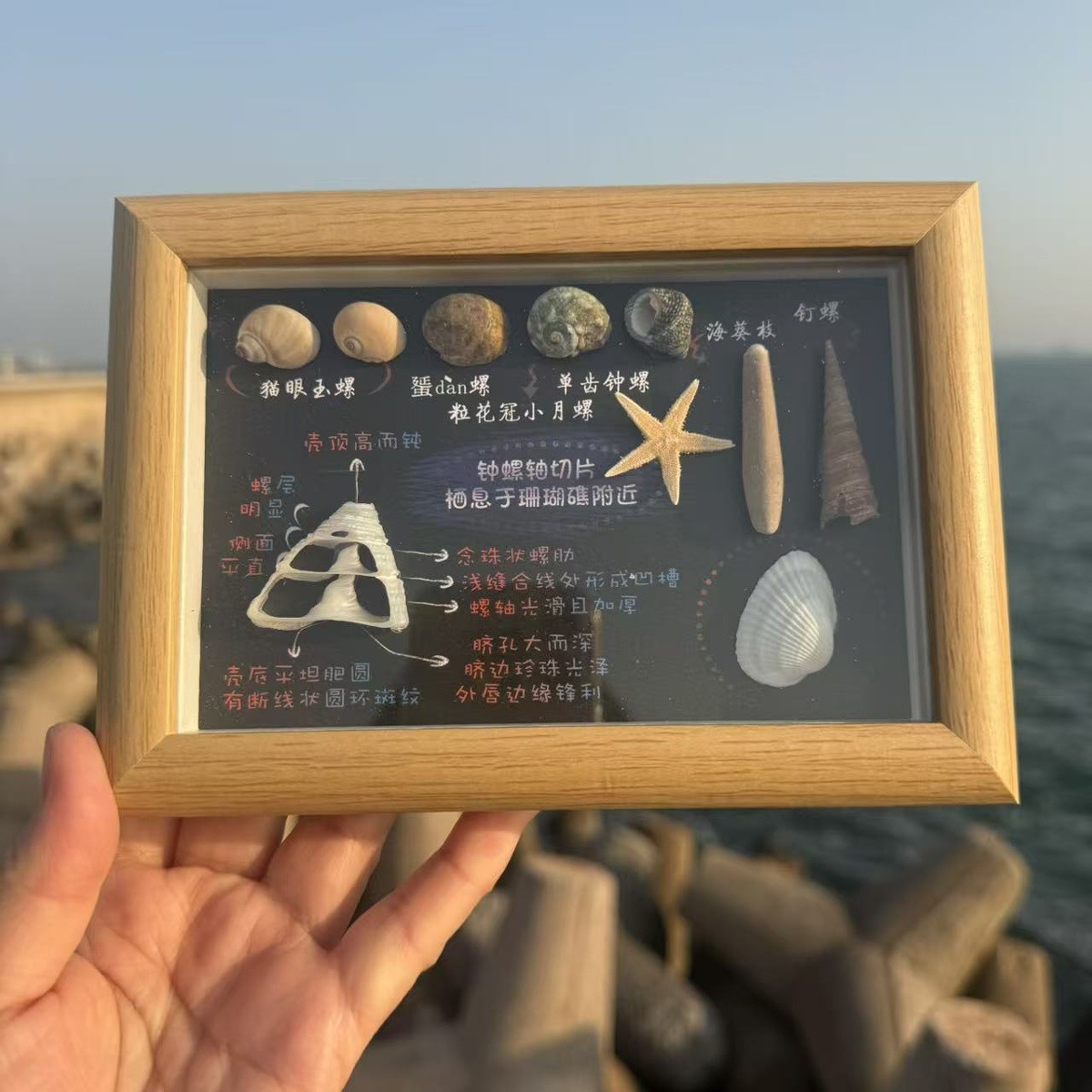 天然海螺贝壳咸鱼海参鲍螃蟹标本相框摆件海边纪念品文创礼品礼物