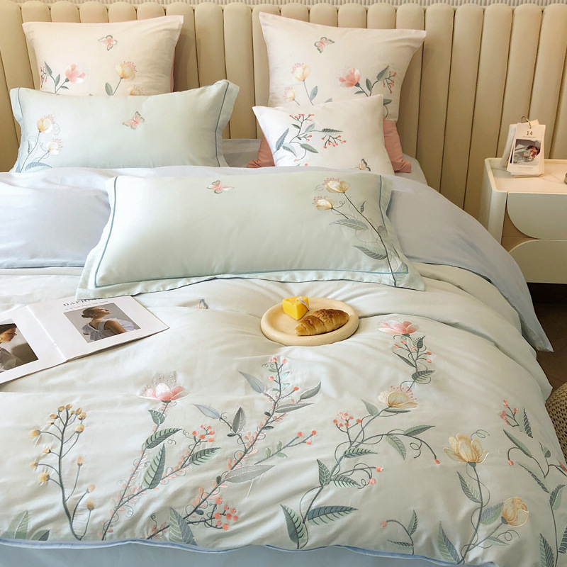 軽豪華刺繍綿四点セット純綿100布団カバーシーツシンプル刺繍ロマンチック寝具