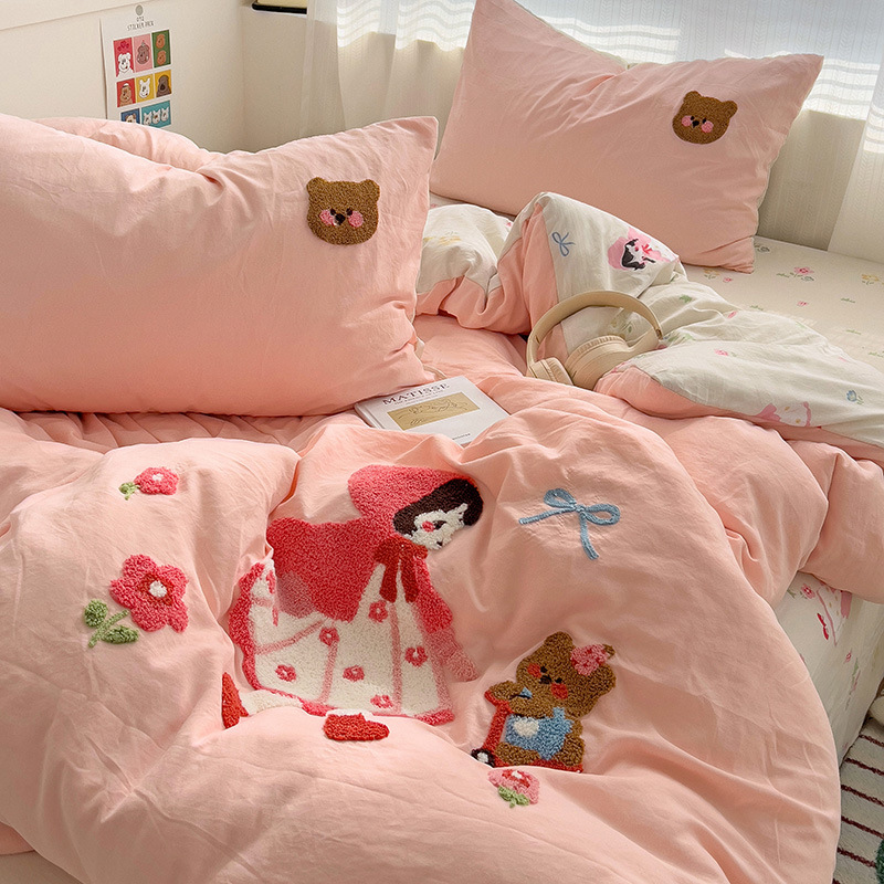 Insタオル刺繍水洗い綿ベッド4点セットシーツ布団カバー柔らかい一人学生寮3点セット