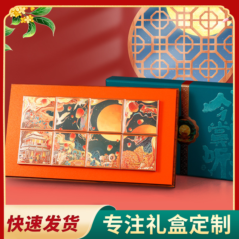 ハイエンド中秋月餅ギフトボックス天地蓋書型手提げマグネット月餅包装ギフトボックス8個入り空箱