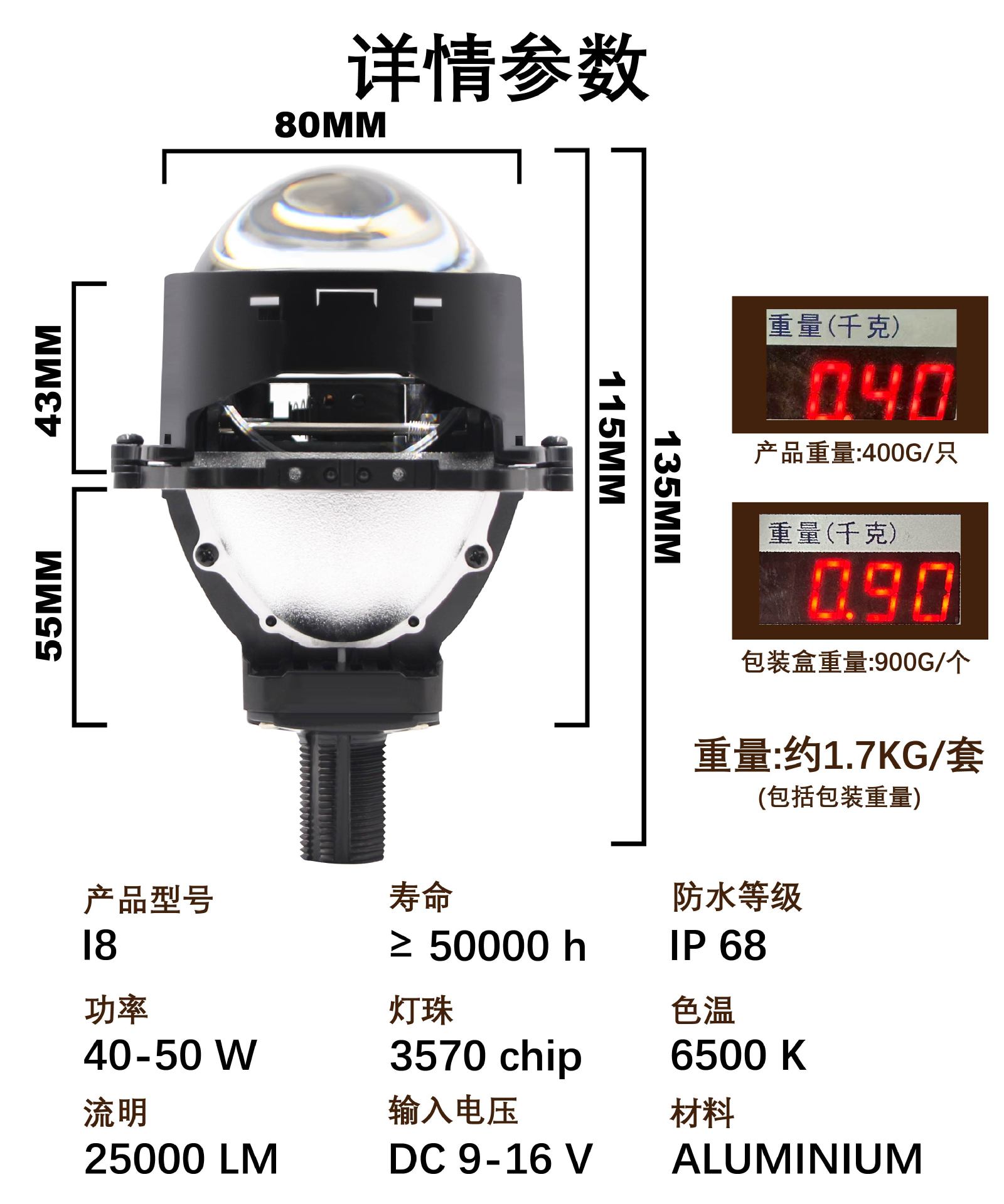 热卖款3.0寸2.5寸I8LED双光透镜汽车led大灯高清无损通用汽车大灯