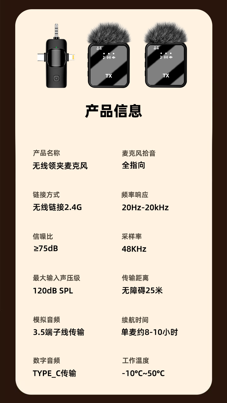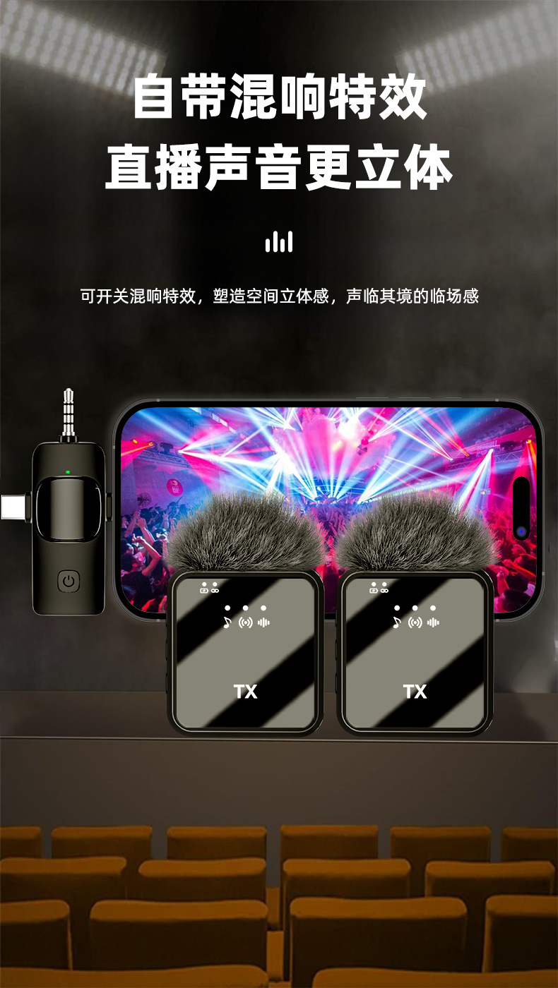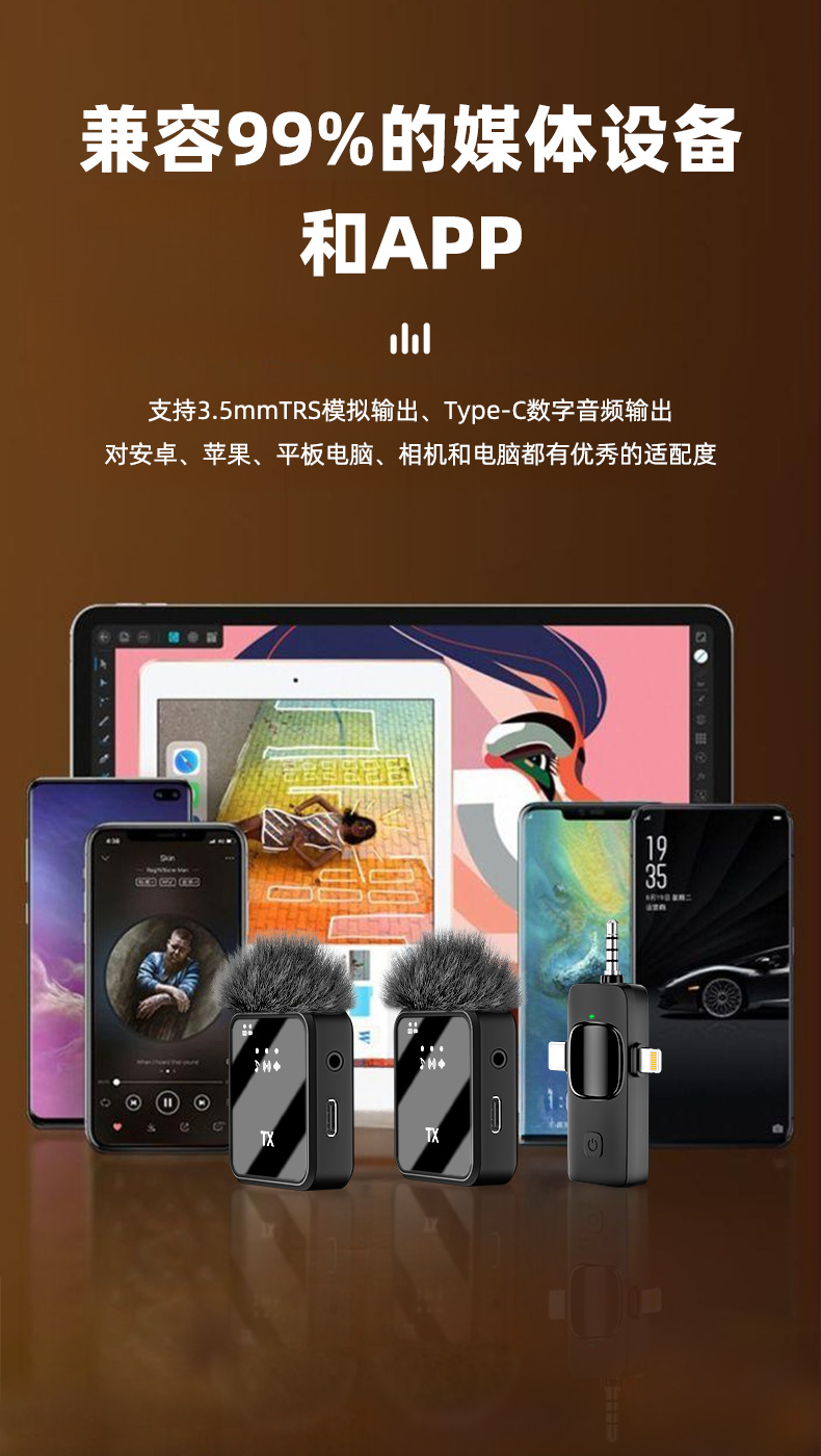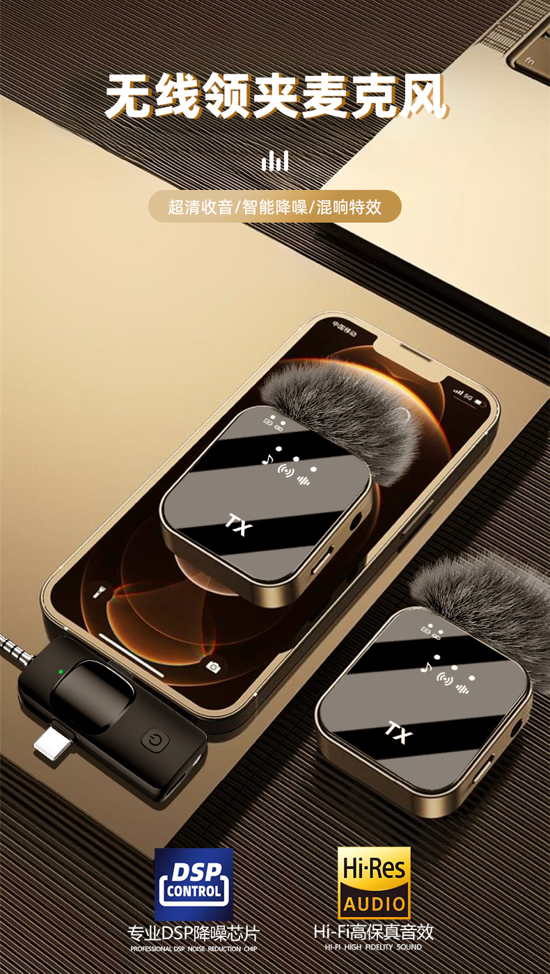 F11无线领夹麦克风一拖二通用领夹麦一体智能降噪直播F15无线话筒