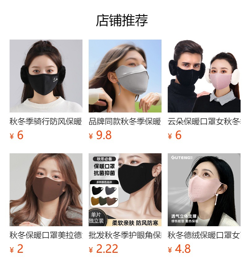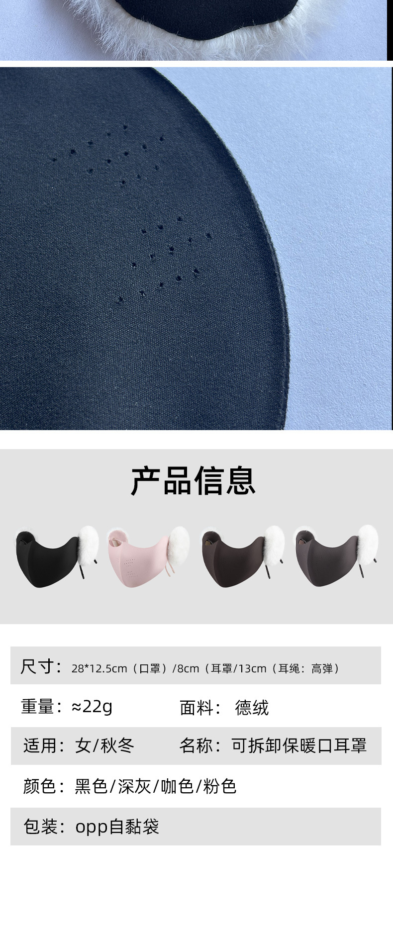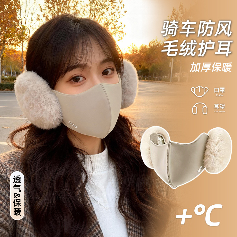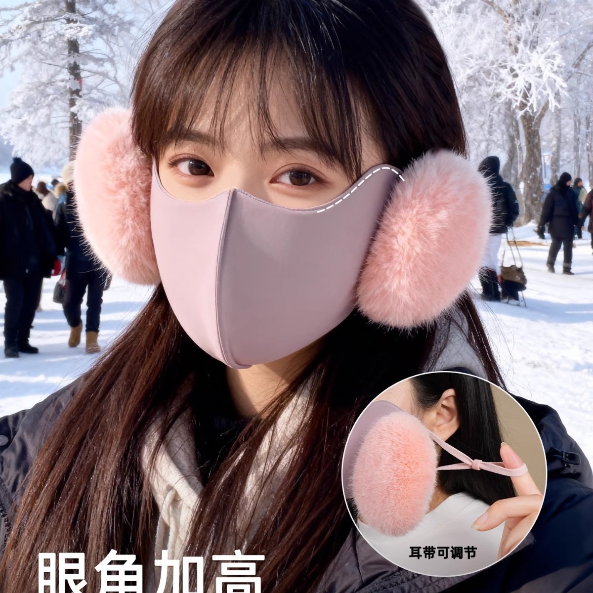 冬季德绒防风护耳保暖口罩女高颜值二合一可拆卸毛绒耳套骑行面罩