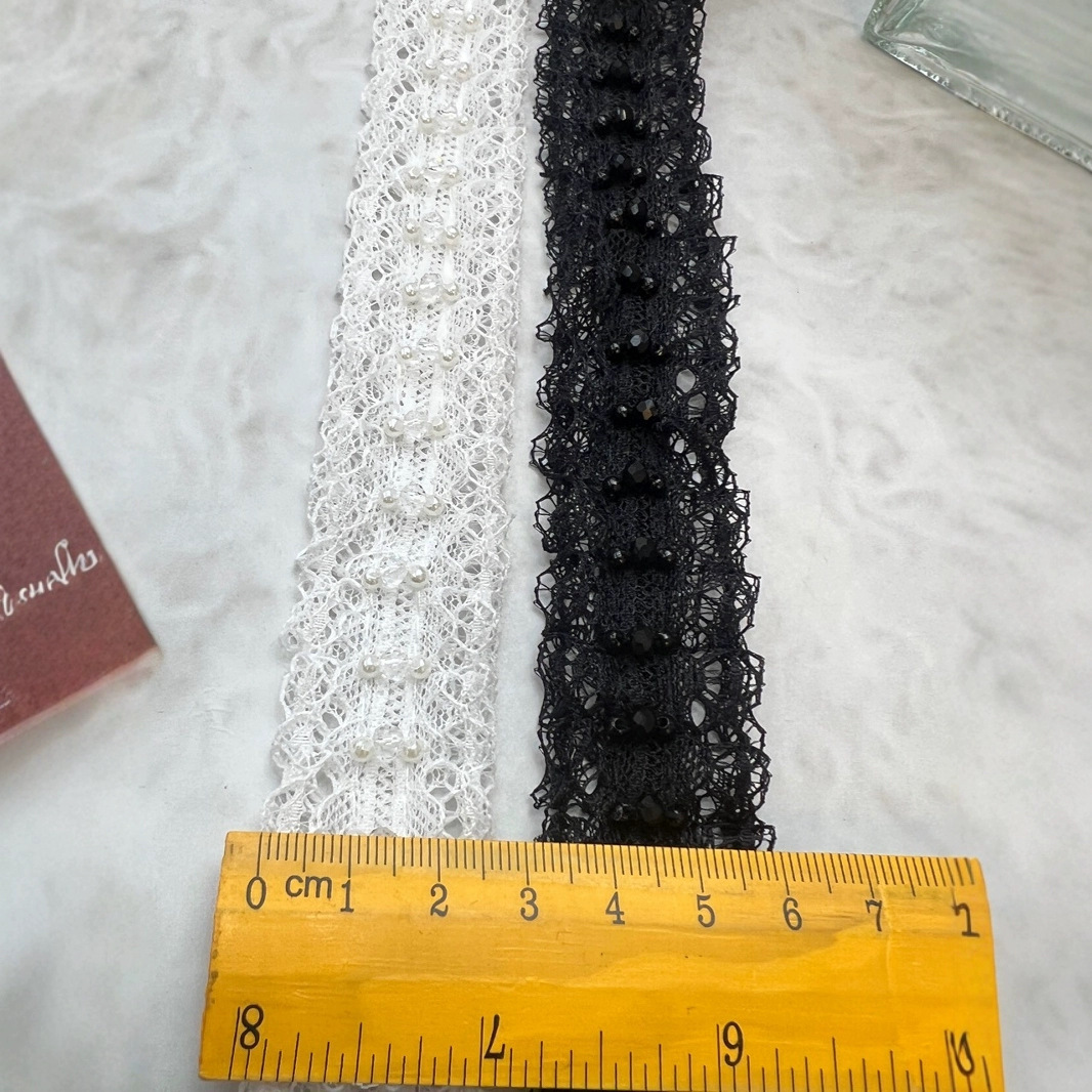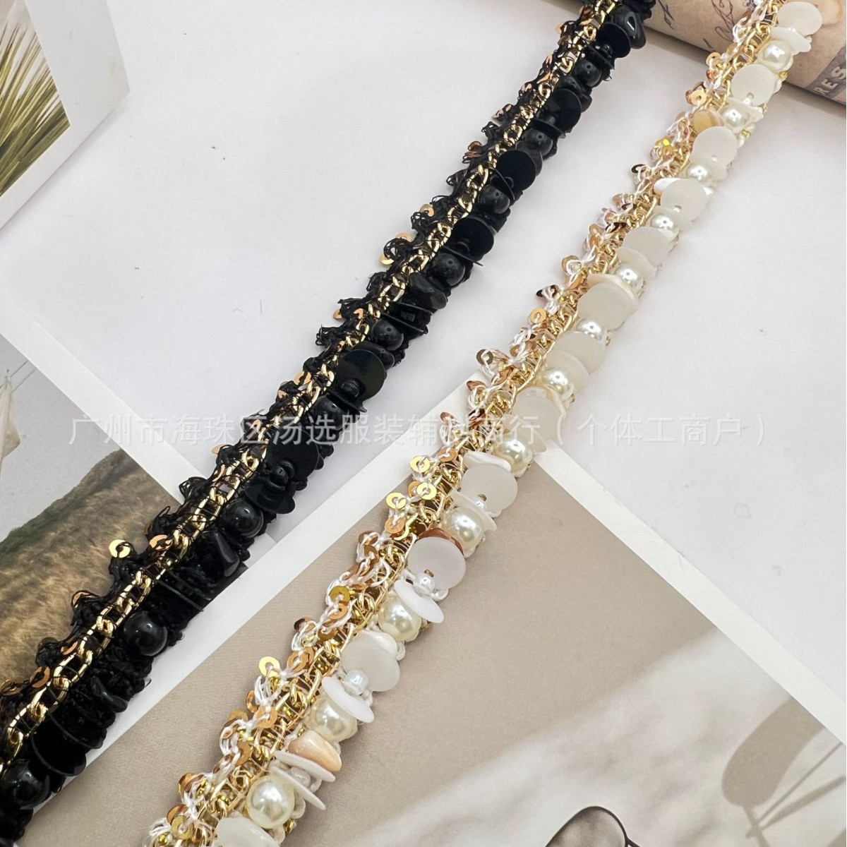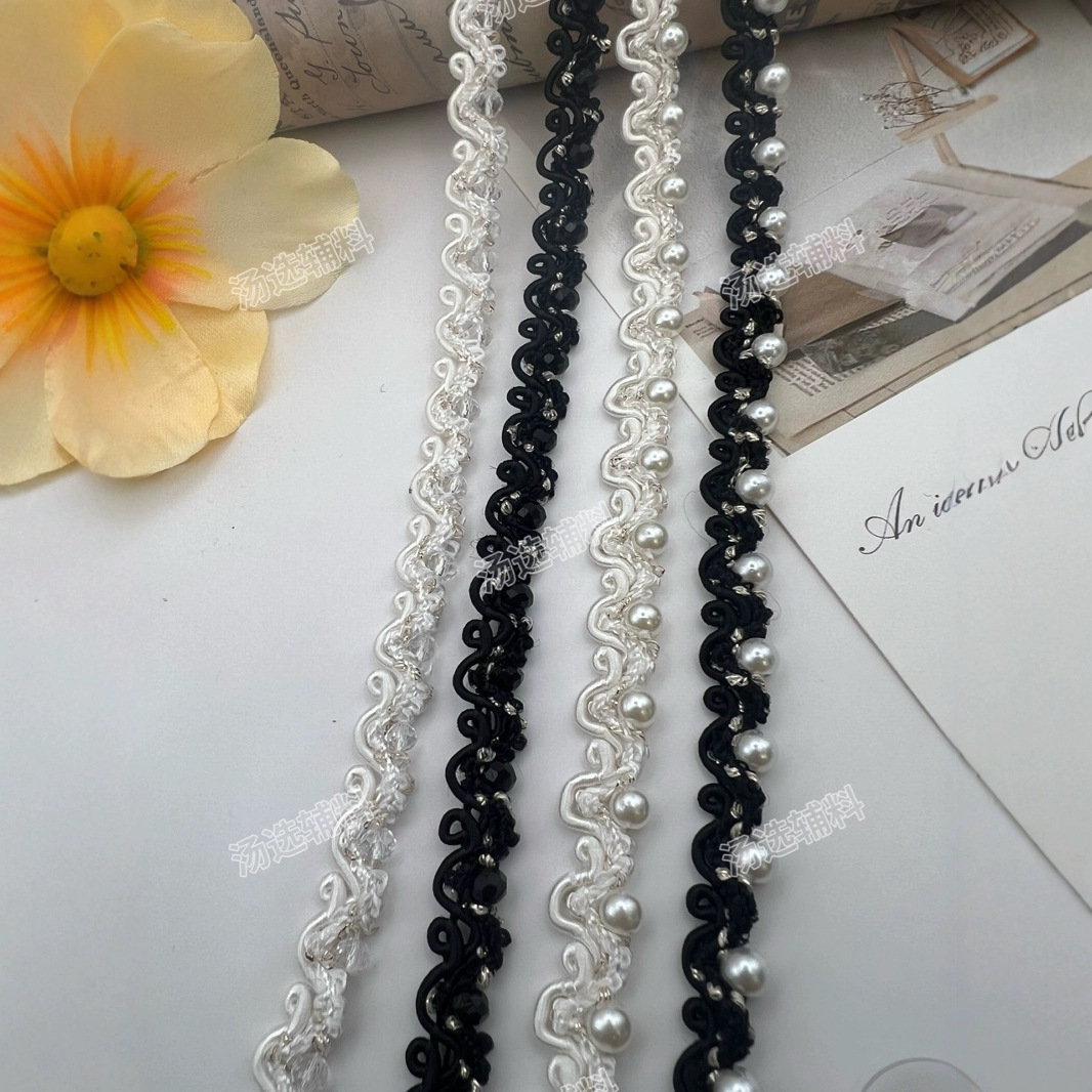 跨境现货黑白钉珠钻小香风花边手工DIY服饰婚纱娃衣帽饰装饰辅料