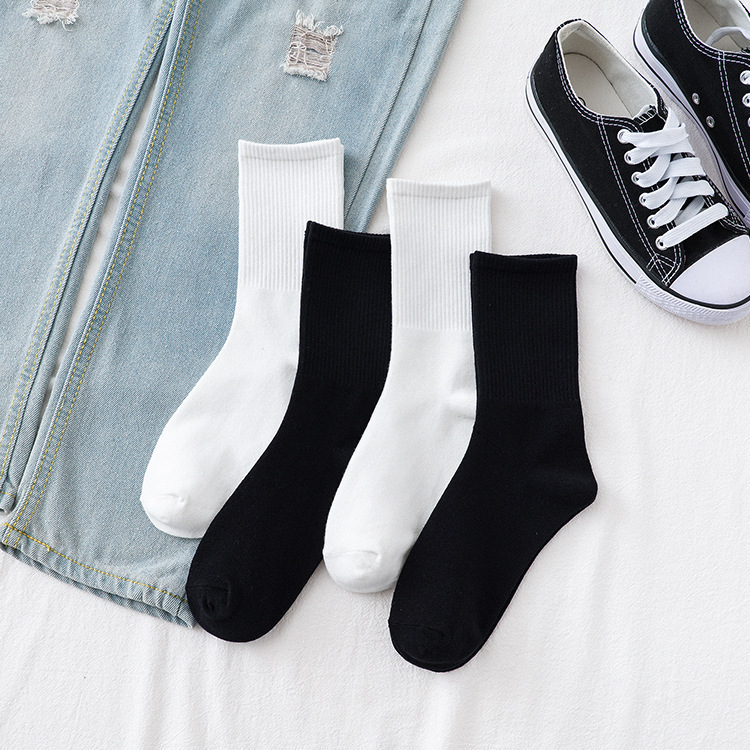 袜子男女春秋夏中筒长筒袜运动袜春季外穿防臭情侣长袜白袜子吸汗