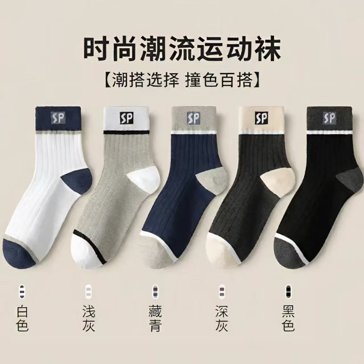 靴下男春夏ミドルソックスSPアルファベット百合男靴下防臭吸汗スポーツ靴下男性綿靴下トレンド靴下