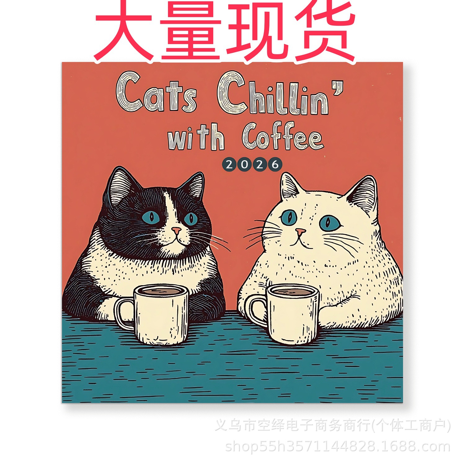 越境新商品 2026年カレンダー CATS CHILLIN' WITH COFFEE コーヒーを飲む猫掛け