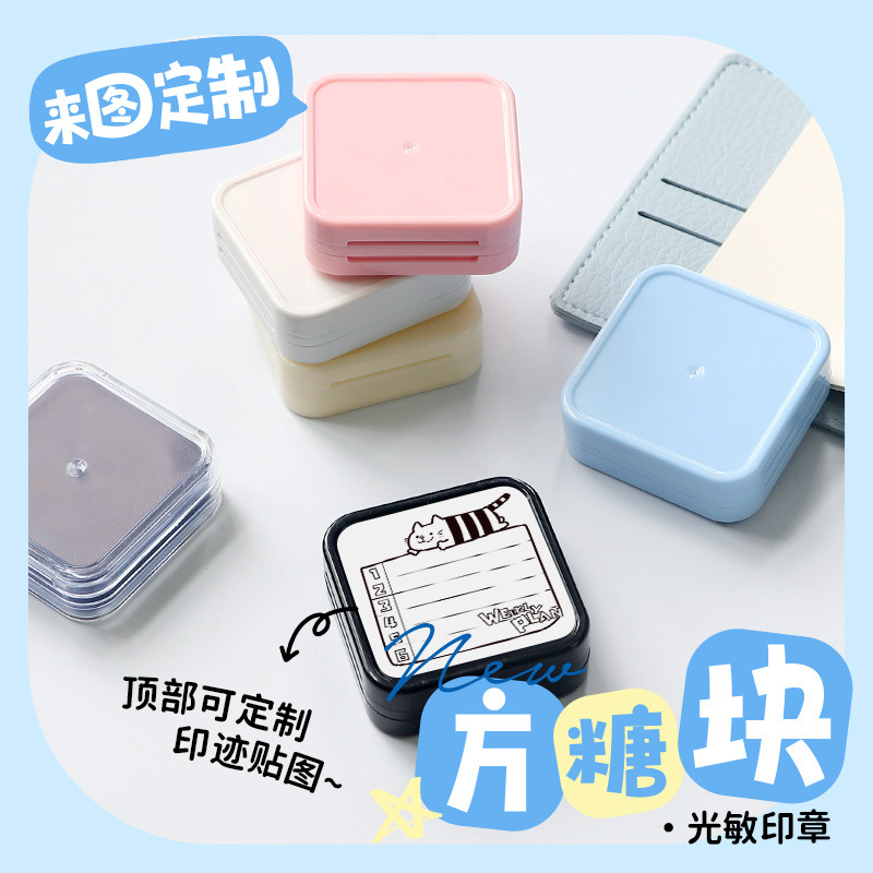 双面55大方章马卡龙方块便携双层方形印章DIY手账印画印光敏印章
