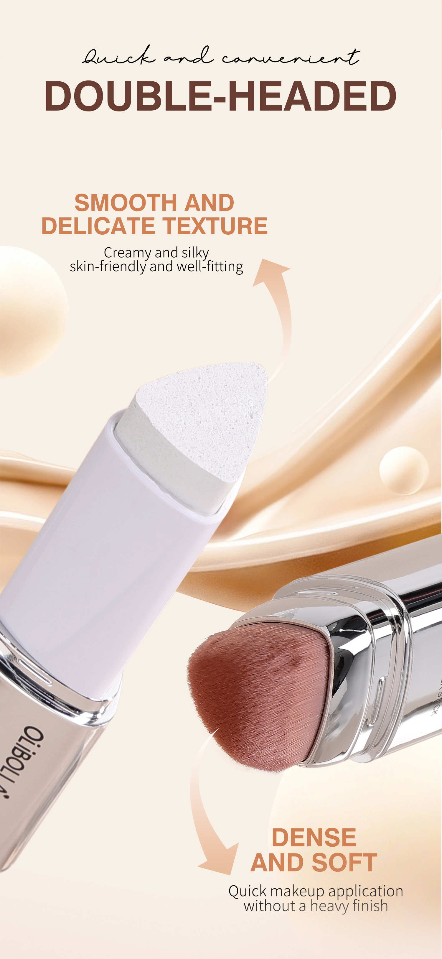 跨境爆款变色三角粉底棒双头二合一水润服帖不卡粉遮瑕膏现货批发