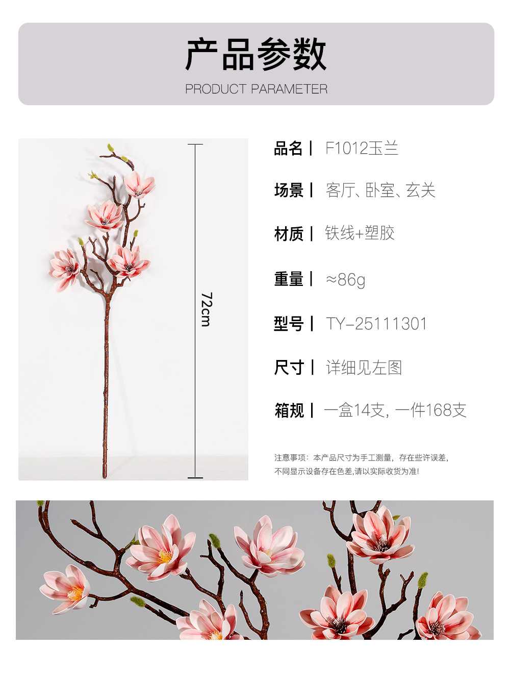 新中式福星玉兰仿真花餐厅卧室客厅酒店婚庆用花EVA仿真玉兰假花