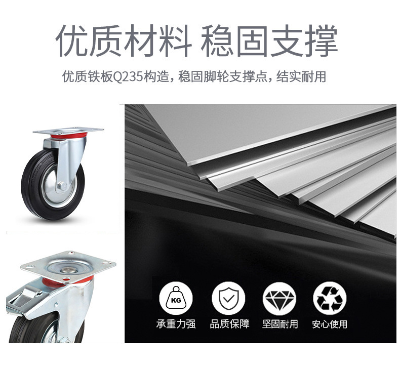 5寸6寸8寸重型万向轮带刹车工具车脚轮静音丝杆黑色橡胶工业轮子