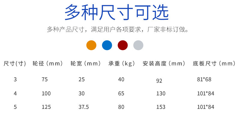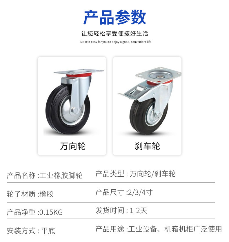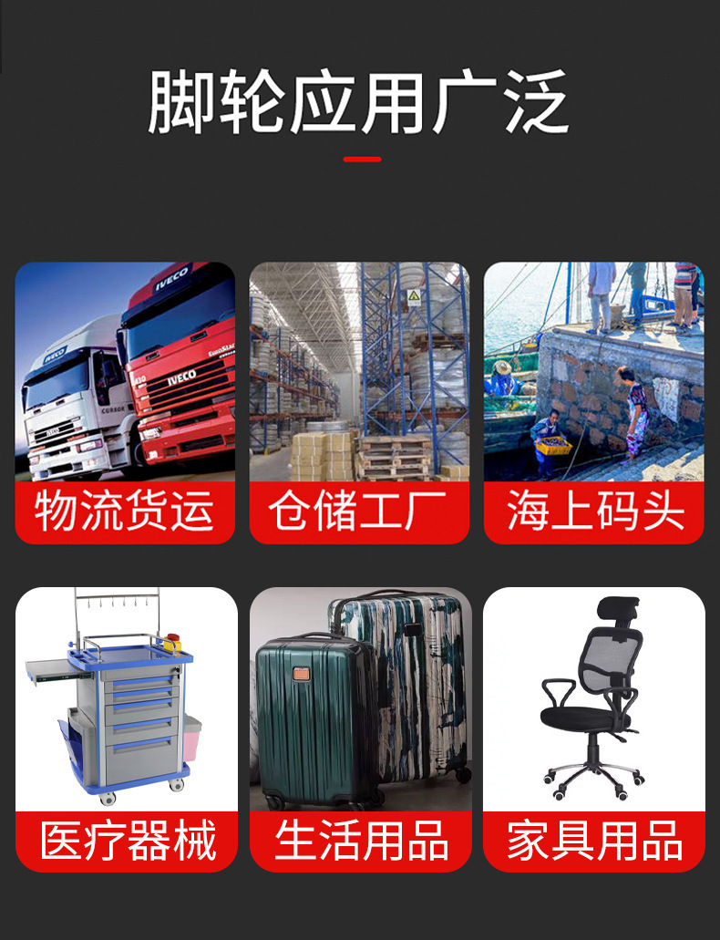 规格型号 定向脚轮【黑色3寸】,定向脚轮【黑色4寸】,定向脚轮【黑色5寸】,定向脚轮【黑色6寸】,定向脚轮【黑色8寸】,万向脚轮【黑色3寸】,万向脚轮【黑色4寸】,万向脚轮【黑色5寸】,万向脚轮【黑色6寸】,万向脚轮【黑色8寸】,【黑色3寸】万向脚轮 带刹车,【黑色4寸】万向脚轮 带刹车,【黑色5寸】万向脚轮 带刹车,【黑色6寸】万向脚轮 带刹车,【黑色8寸】万向脚轮 带刹车