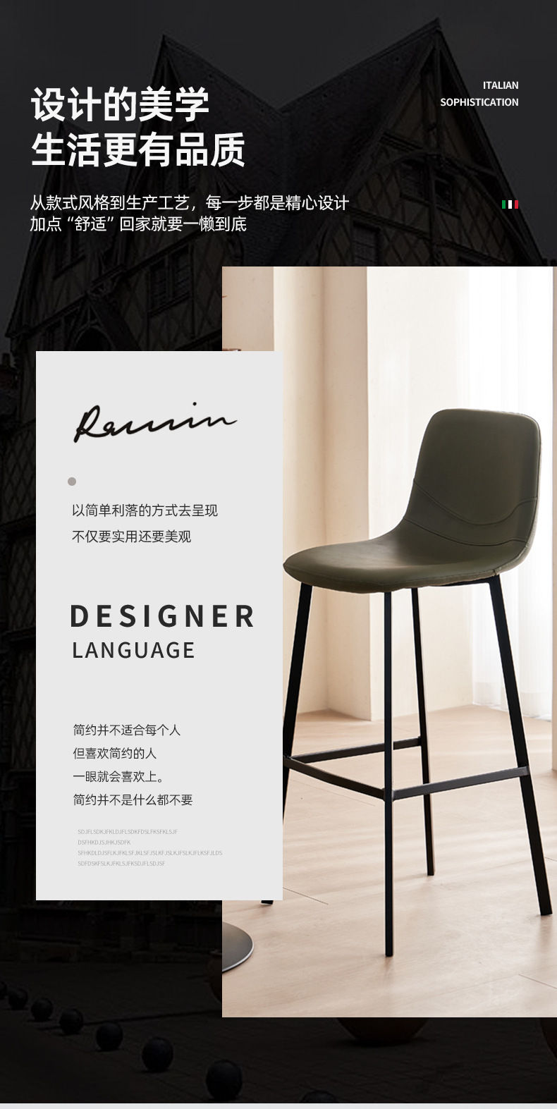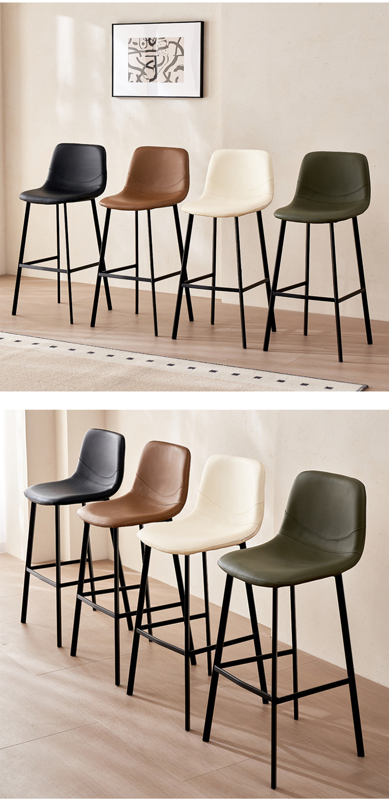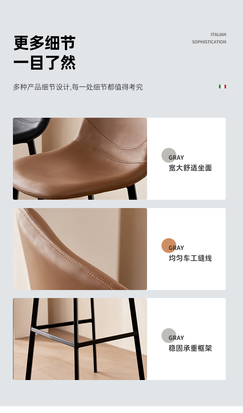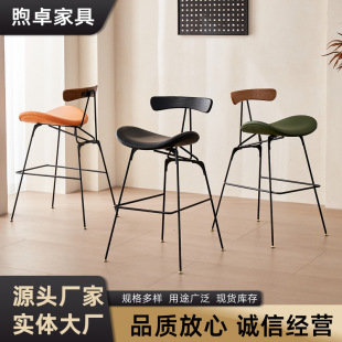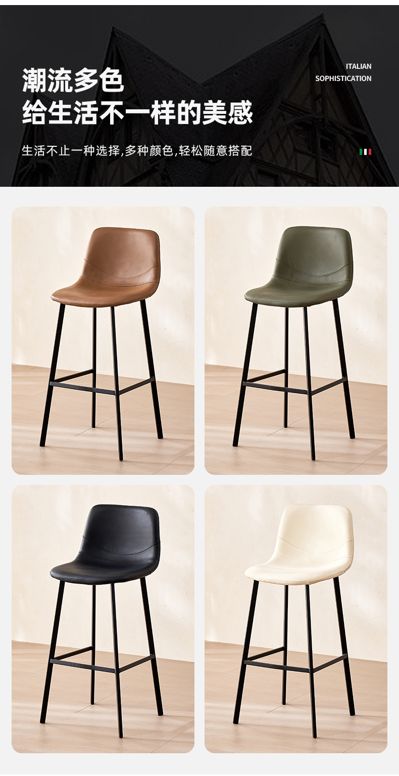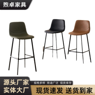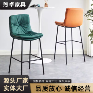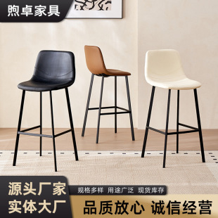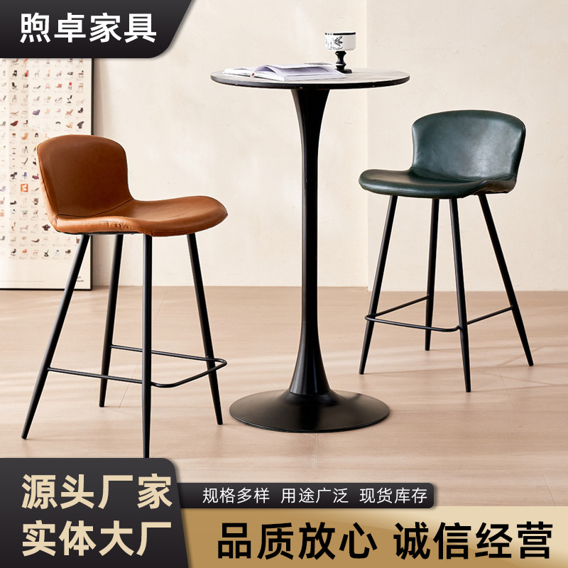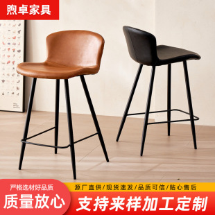跨境货源高脚吧椅意式轻奢家装高脚凳子酒吧椅子靠背皮革椅吧台椅