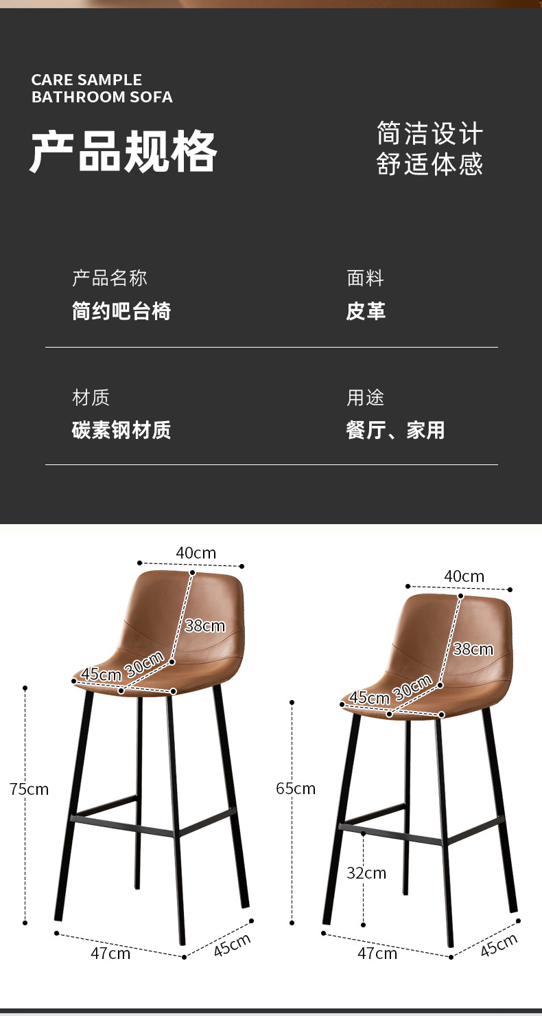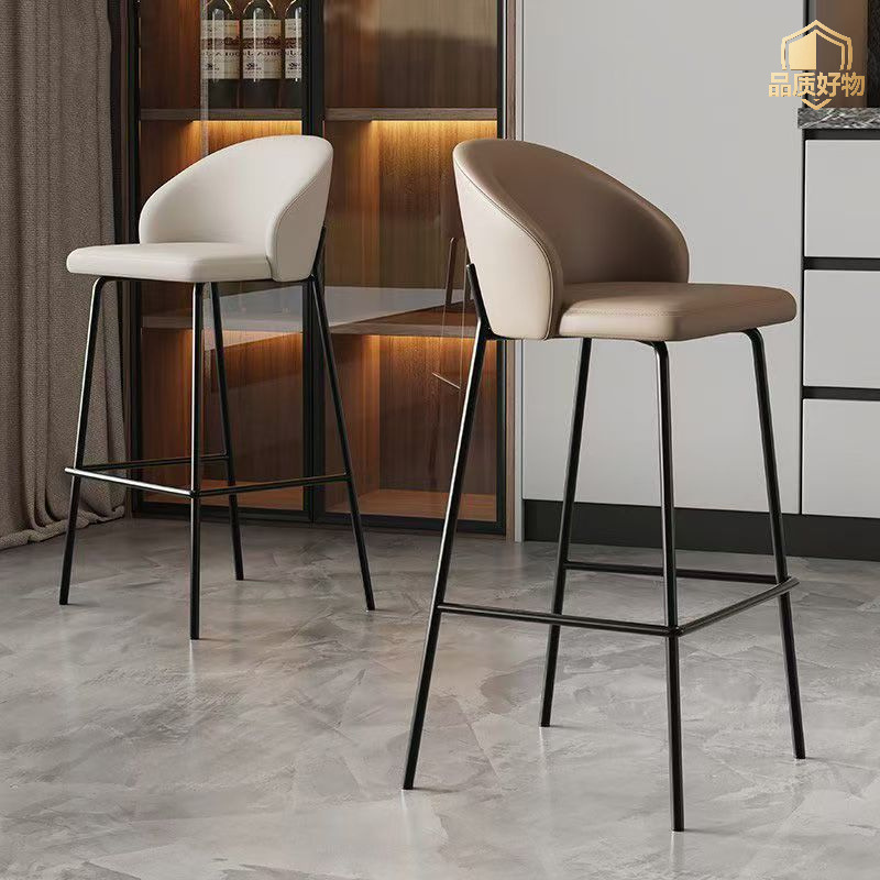 跨境货源高脚椅子轻奢家用椅酒吧椅子靠背皮革椅高脚凳吧台椅