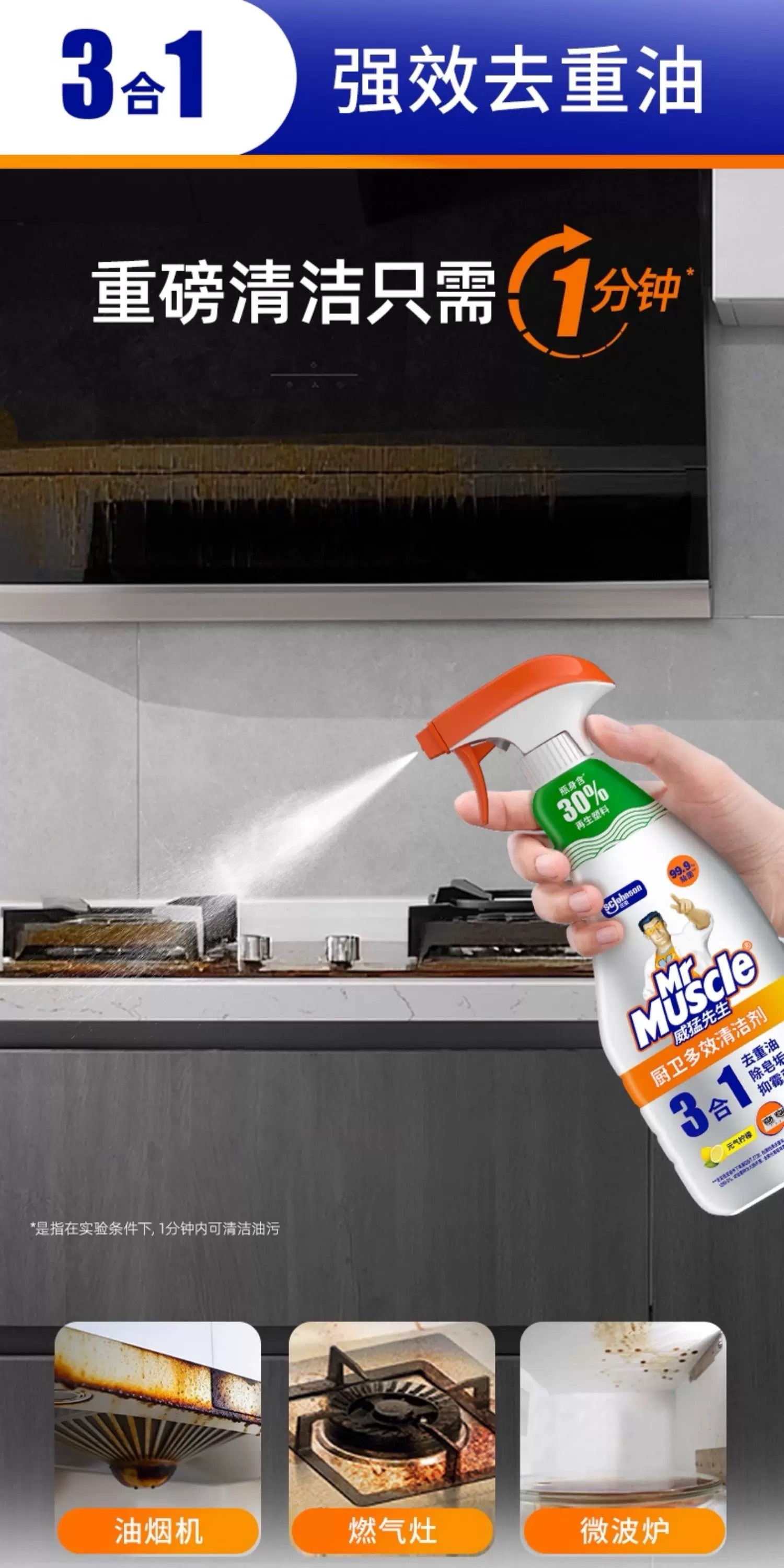 威猛先生重油污净强力去油三合一多效厨房垢皂浴室清洁除霉剂正品
