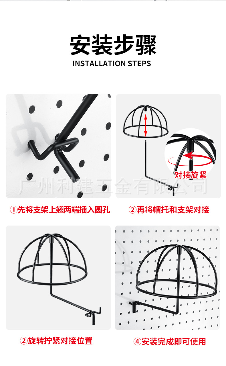 创意铁艺帽架 洞洞板收纳置物帽架 帽子存放展示架 不易变形