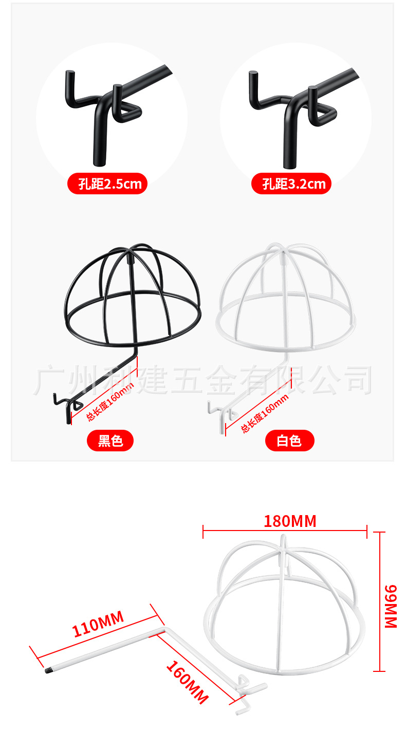 卸売り3.2穴距離穴板帽子ラック2.5穴距離穴板帽子ラック穴板帽子展示フック支持帽子ホルダー