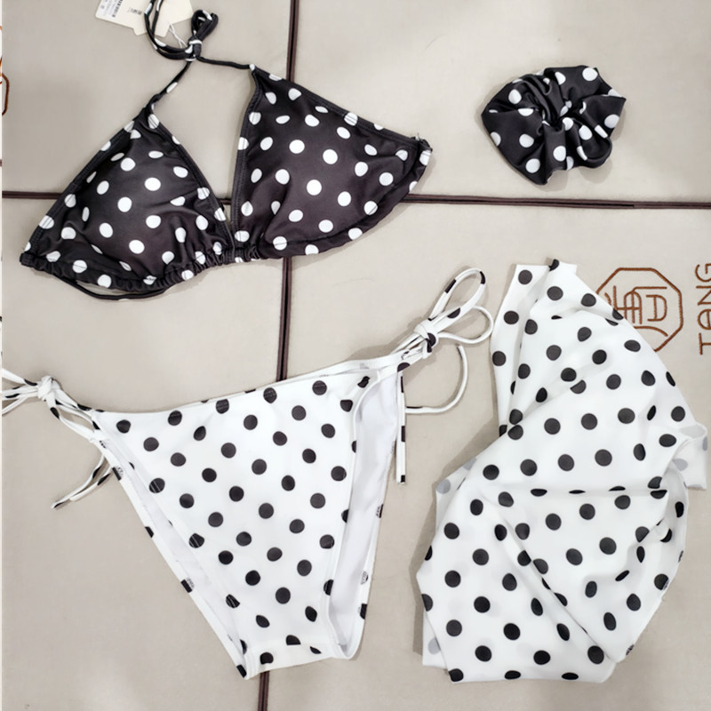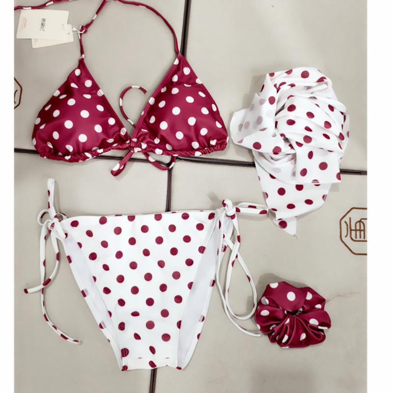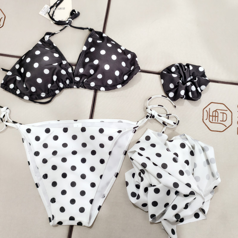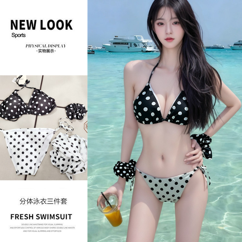 泳衣女高级感撞色波点分体比基尼bikini辣妹泡温泉度假沙滩泳装女
