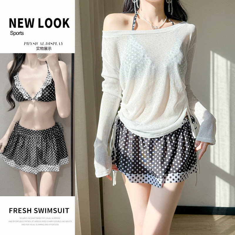 百搭少女泳衣女四件套泡温泉分体罩衫小胸bikini海边沙滩比基尼女