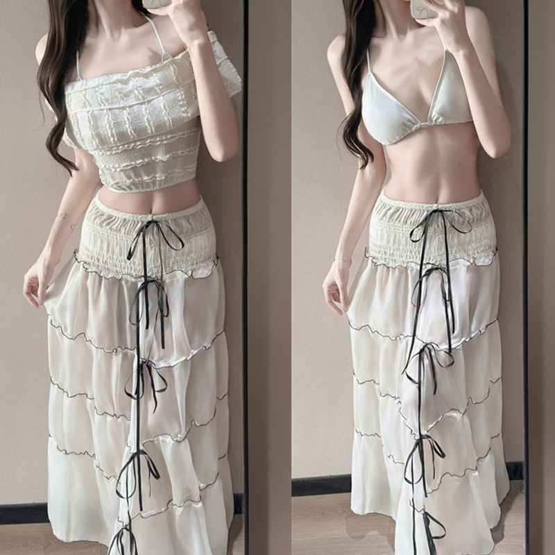 2026纯欲风可爱少女防晒衫比基尼游泳衣女外衫海岛度假温泉四件套