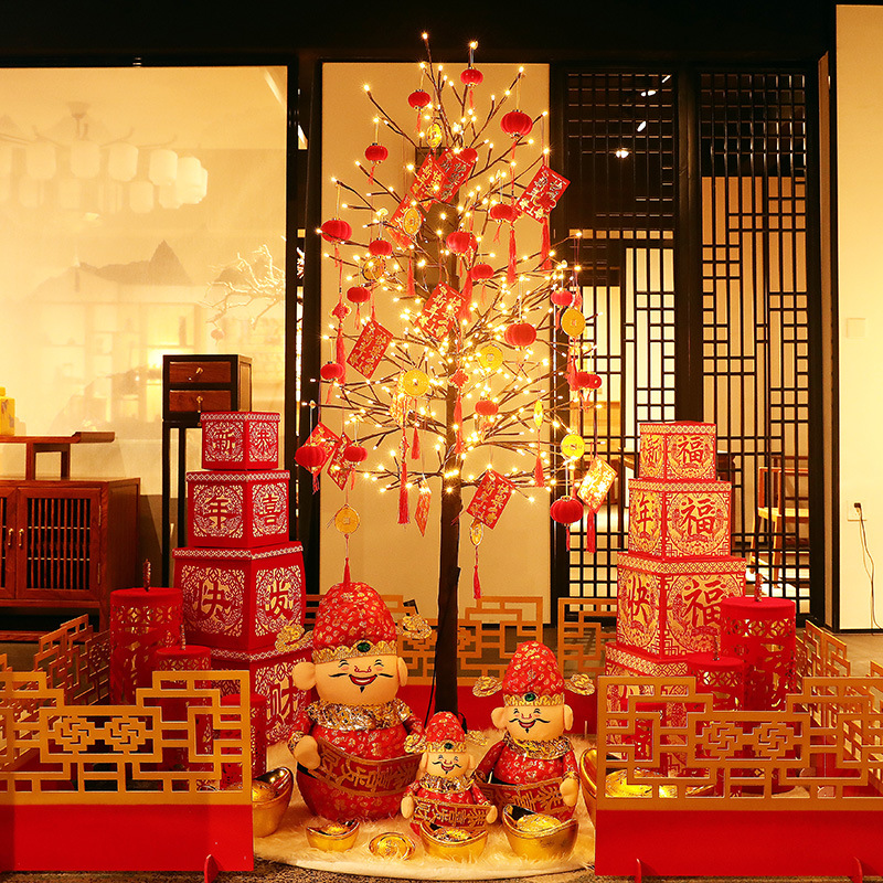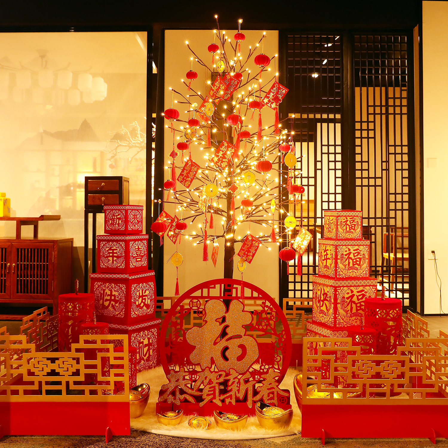 2025年新年の春節装飾シーンに美陳ホテル年会デパートのショーウインドーを配置します。