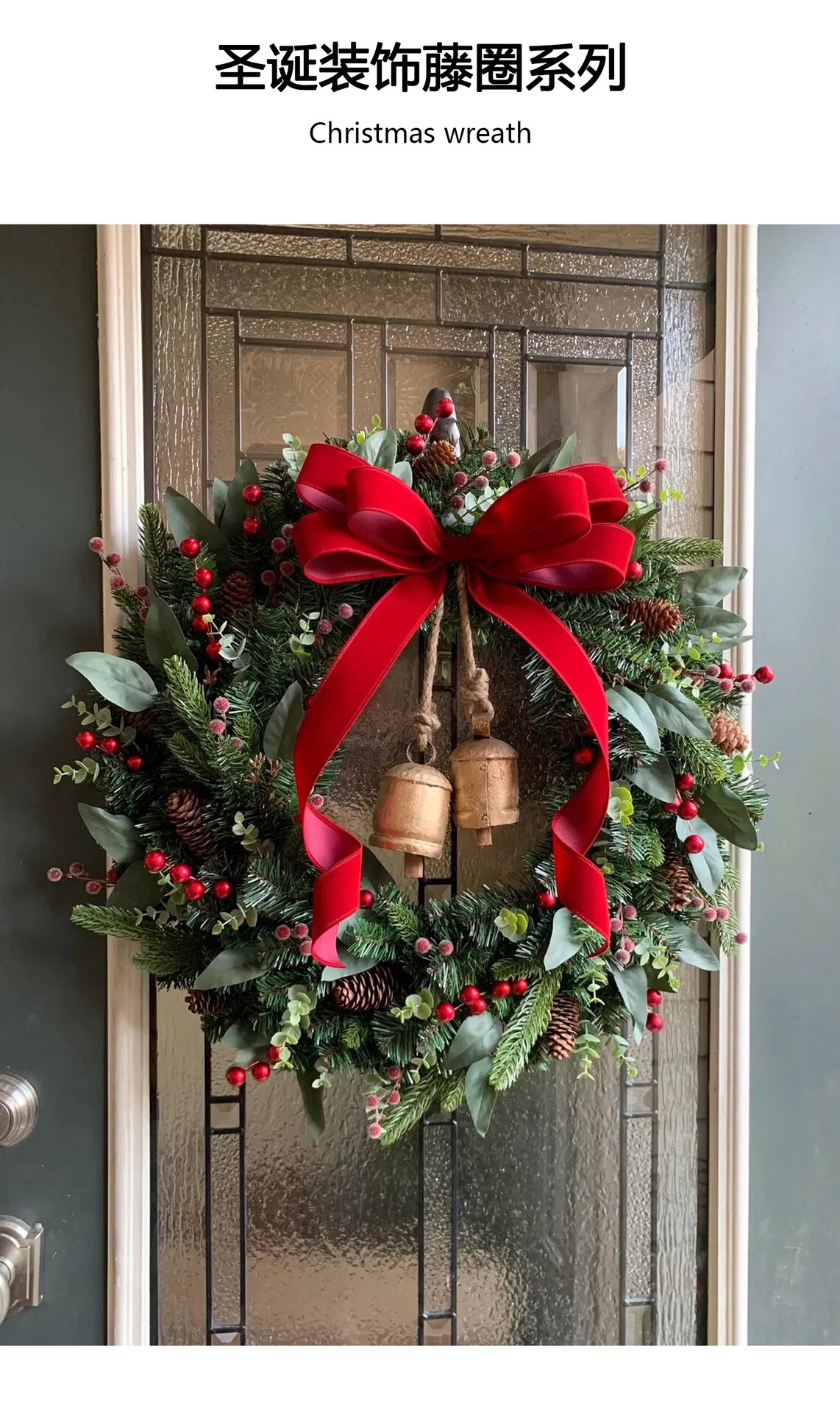 圣诞花环圣诞节装饰品挂件门挂花环装饰场景布置独立站跨境批发