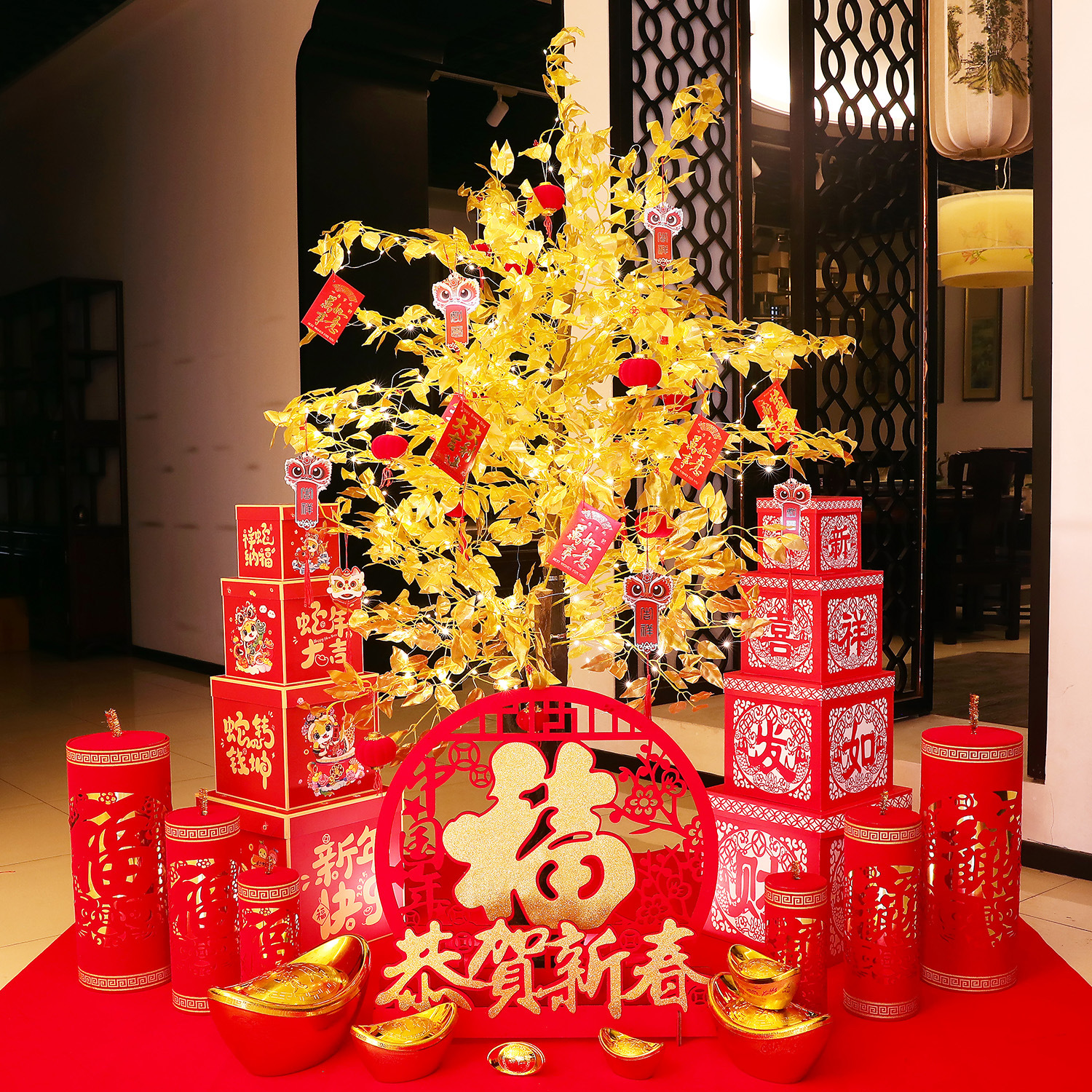 2025蛇年樹灯新年旧正月装飾シーンにデパートのショーウインドー美陳年会銀行の積み上げ品を配置する