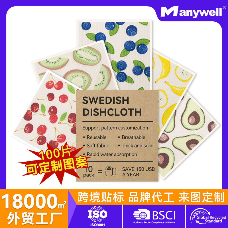 デザイン可能なプリントキッチンスポンジの皿洗い布の厚い多機能吸水百潔布ドイツの木質綿の雑巾