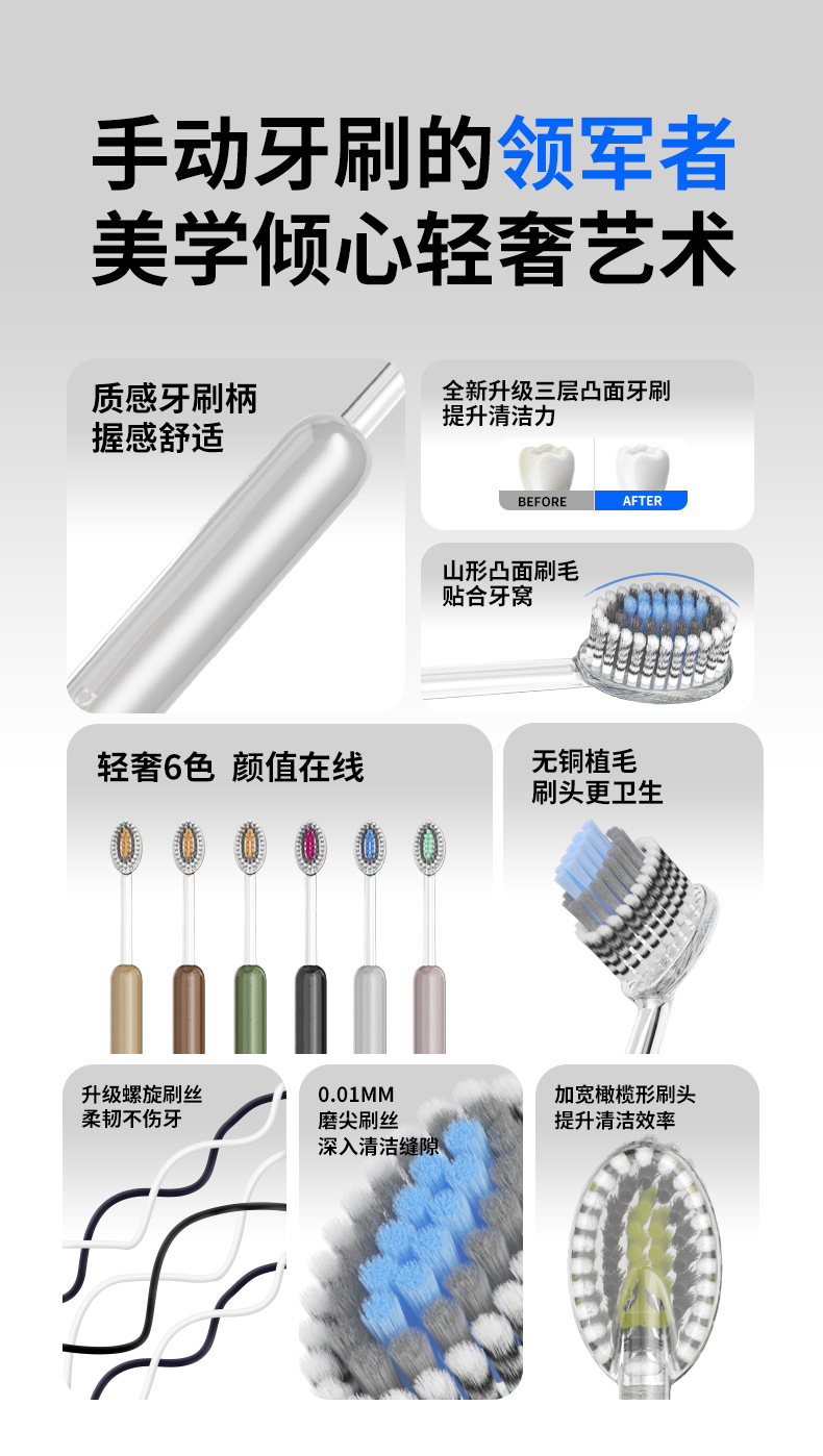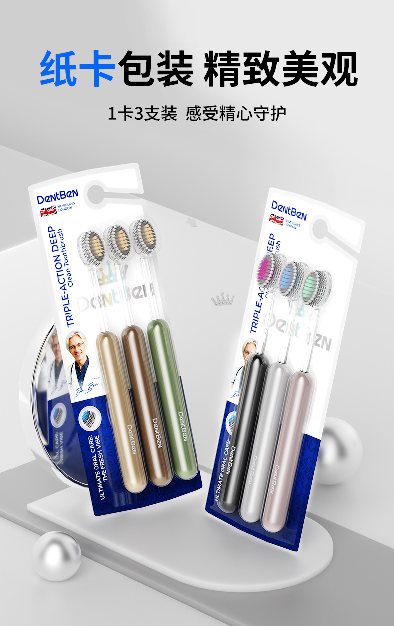 英国班博士山型凸面牙刷成人软毛螺旋丝清洁橄榄宽头轻奢牙刷批发