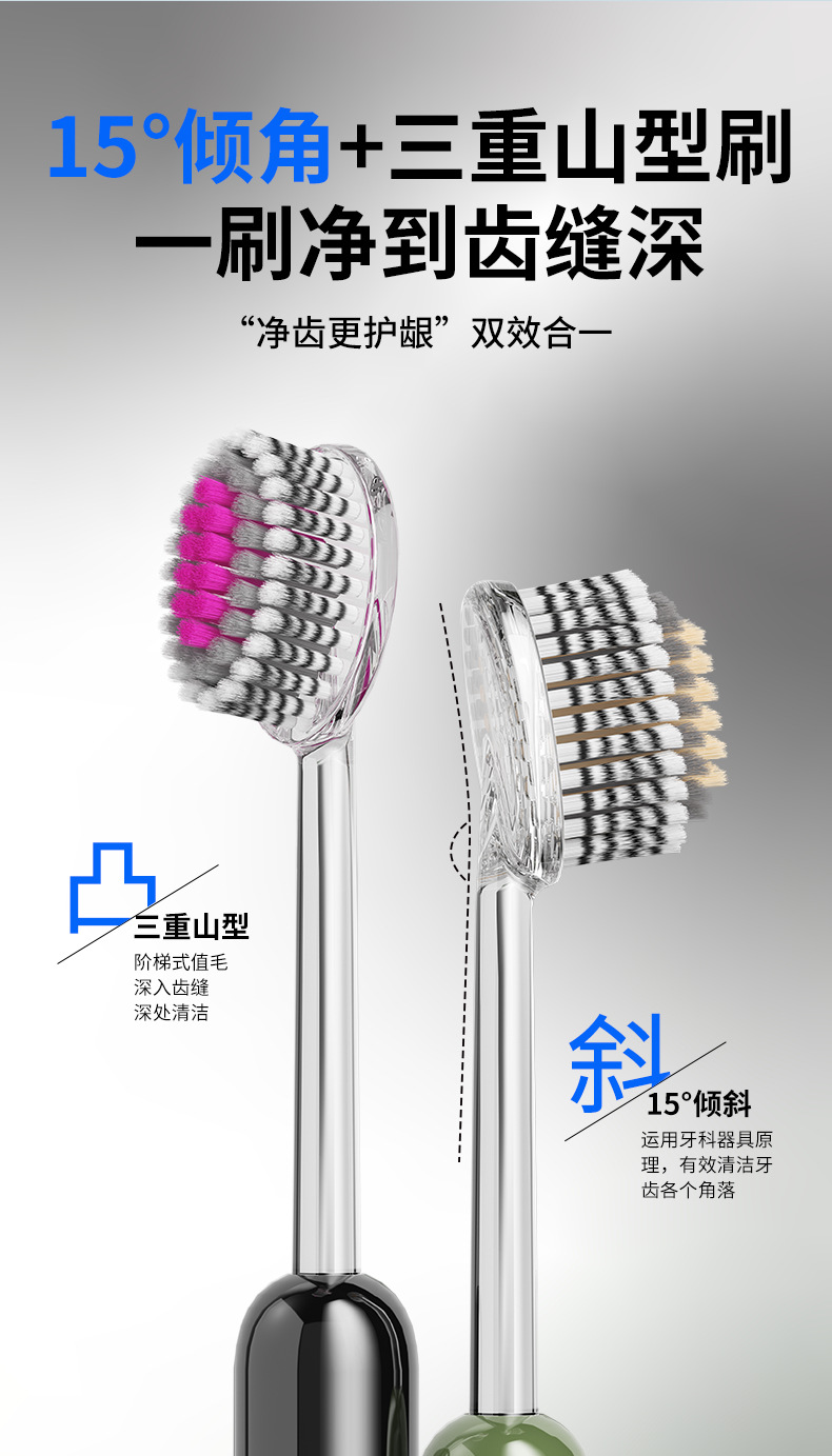 日本品牌轻奢山型凸面牙刷清洁护龈成人螺旋弹力星空紫软毛牙刷