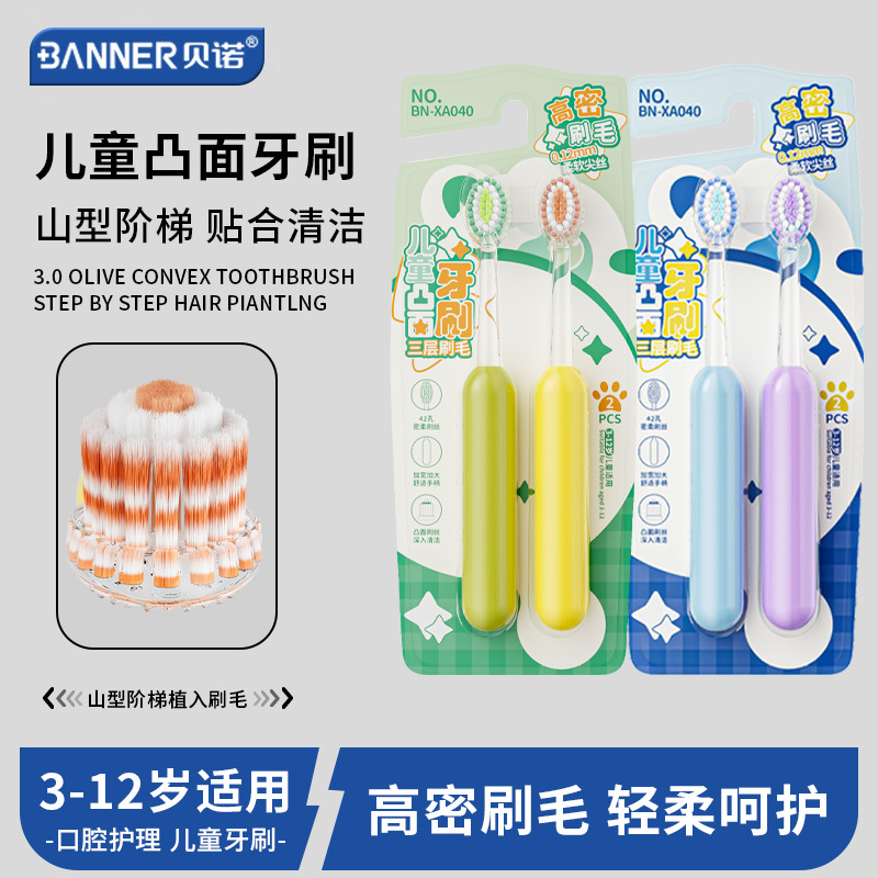 贝诺新款儿童凸面牙刷6-12岁清洁护龈软毛牙刷儿童正品批发定制