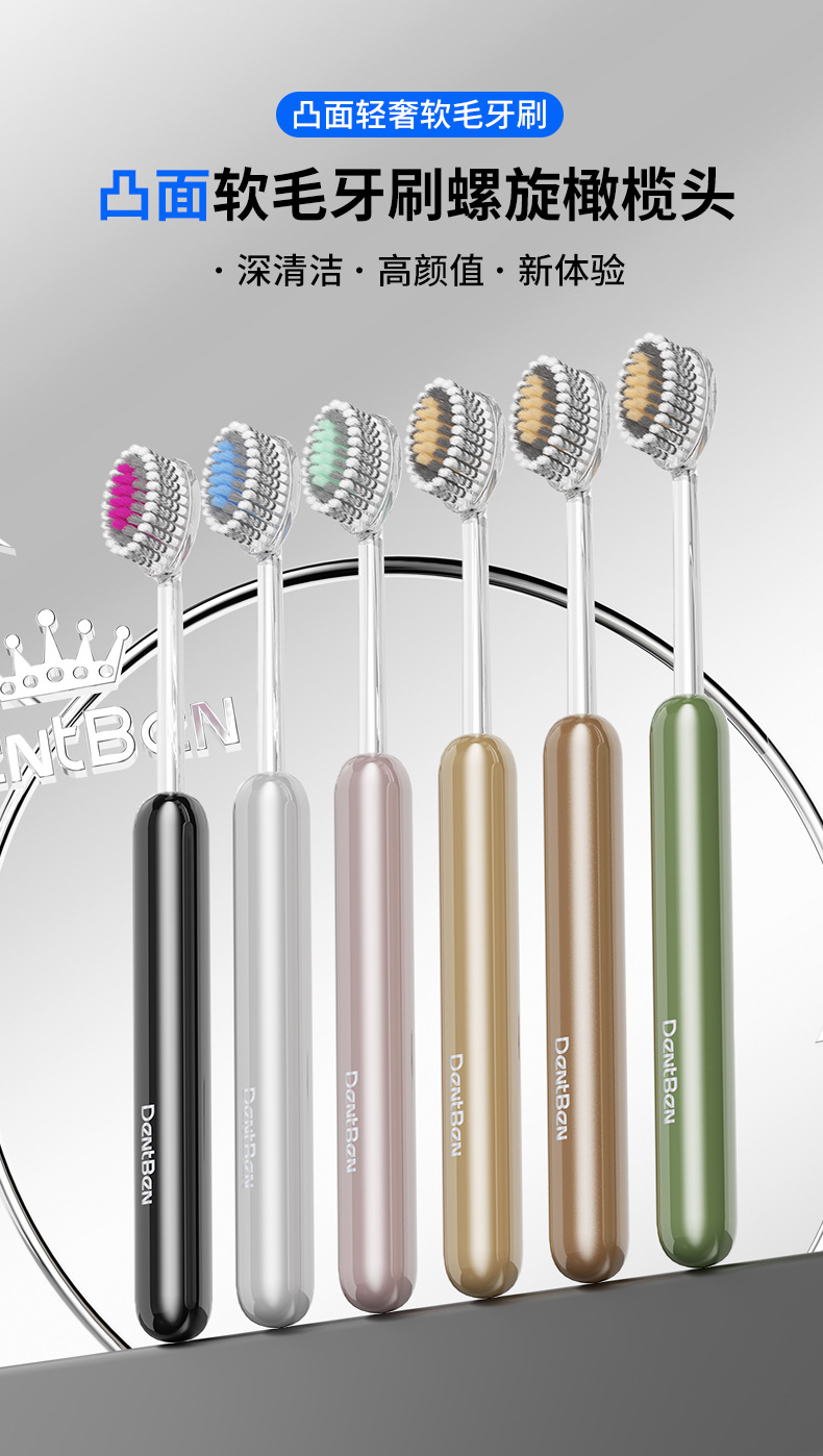 班博士轻奢山型凸面牙刷成人软毛螺旋丝清洁护龈宽头高档牙刷批发
