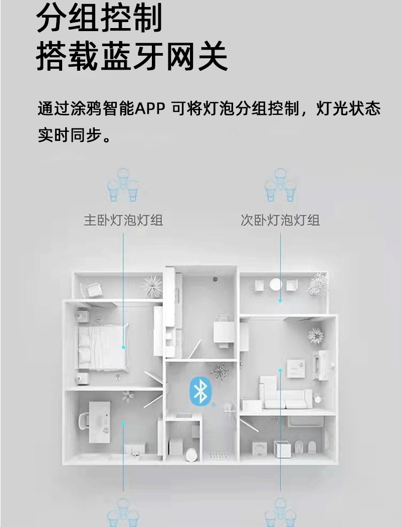 涂鸦智能蓝牙Bluetooth球泡RGBCW调光调色LED灯泡手机APP控制