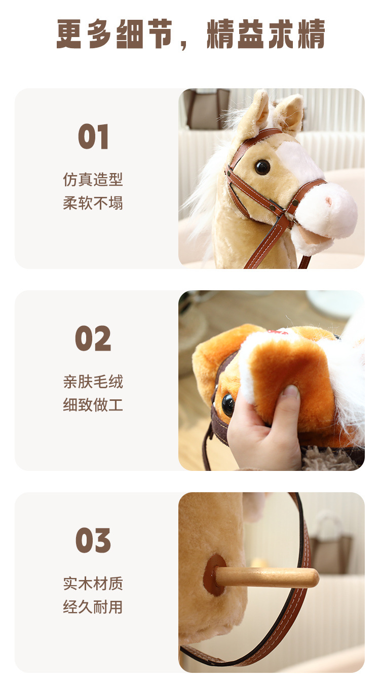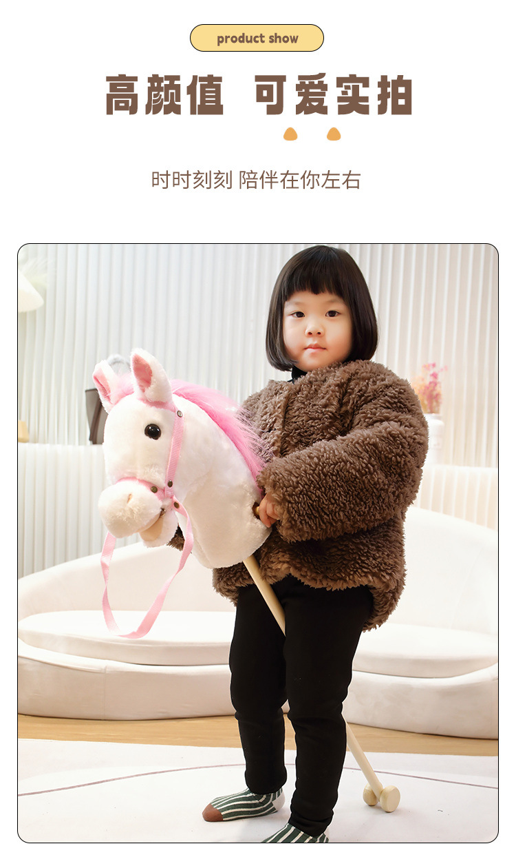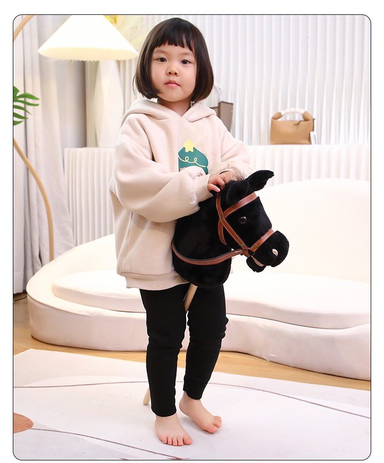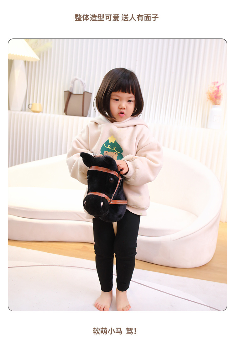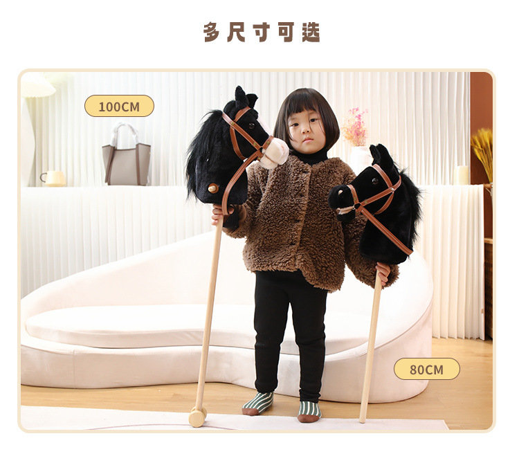 马头棒儿童玩具长鬃毛仿真动物柔软毛绒表演创意礼物骑行棍批发