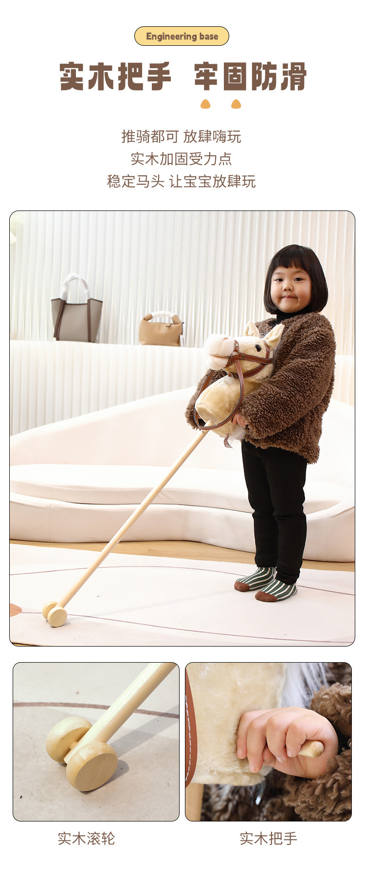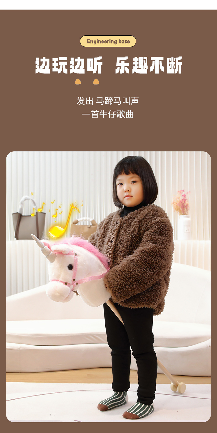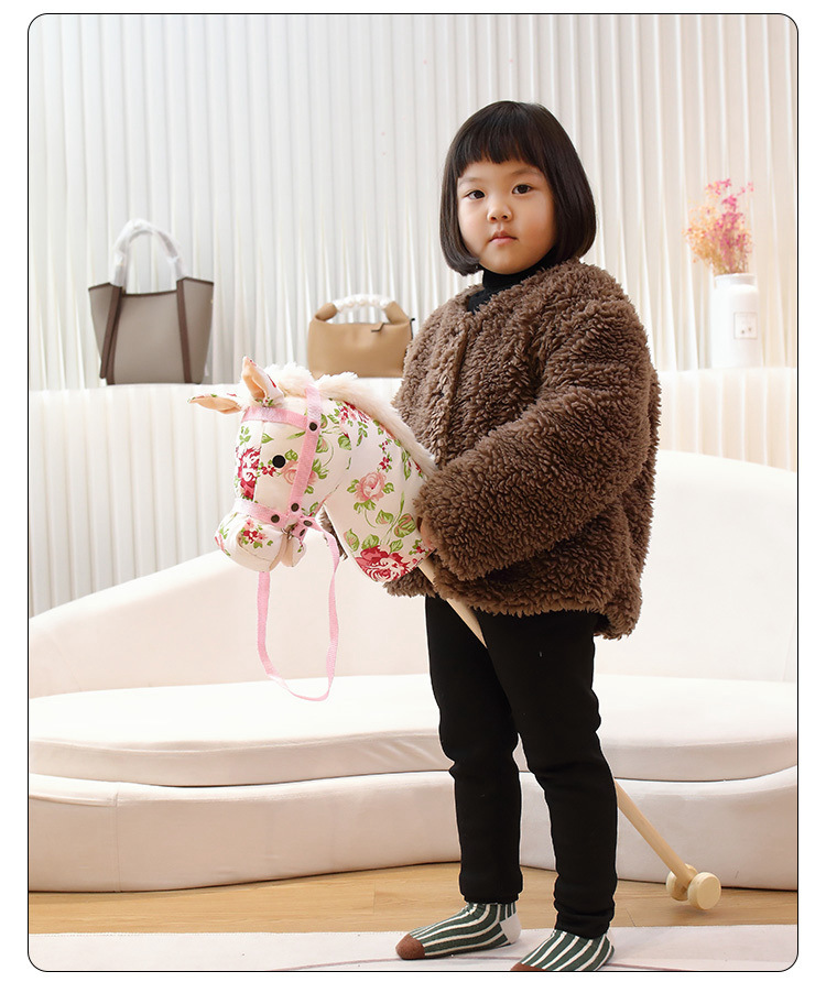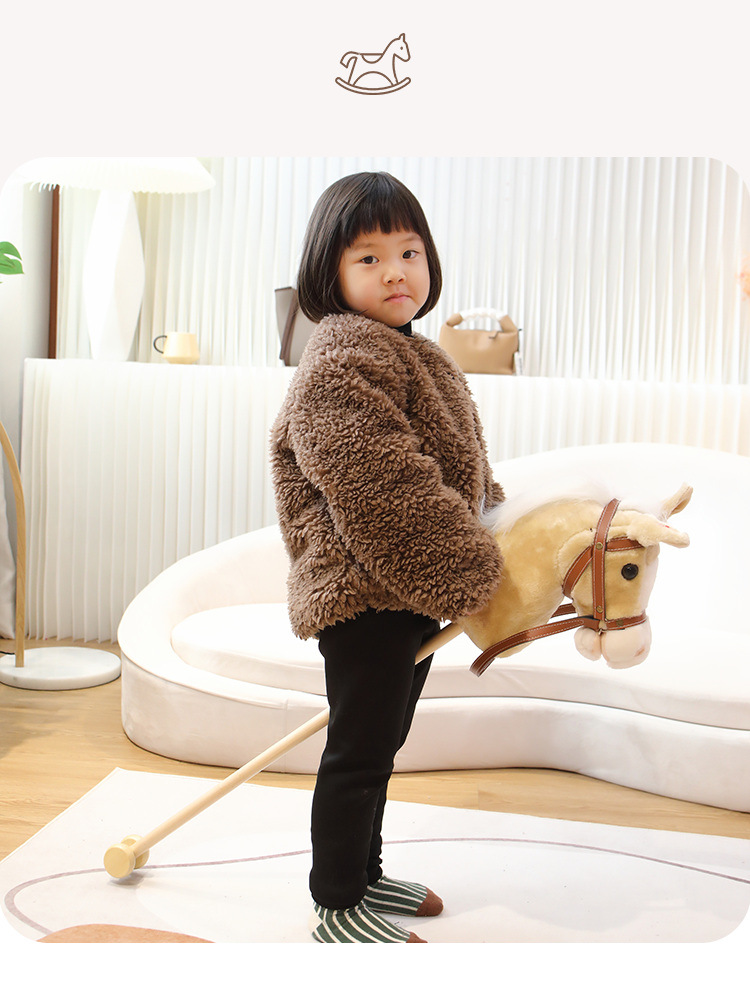 马头棒儿童玩具长鬃毛仿真动物柔软毛绒表演创意礼物骑行棍批发