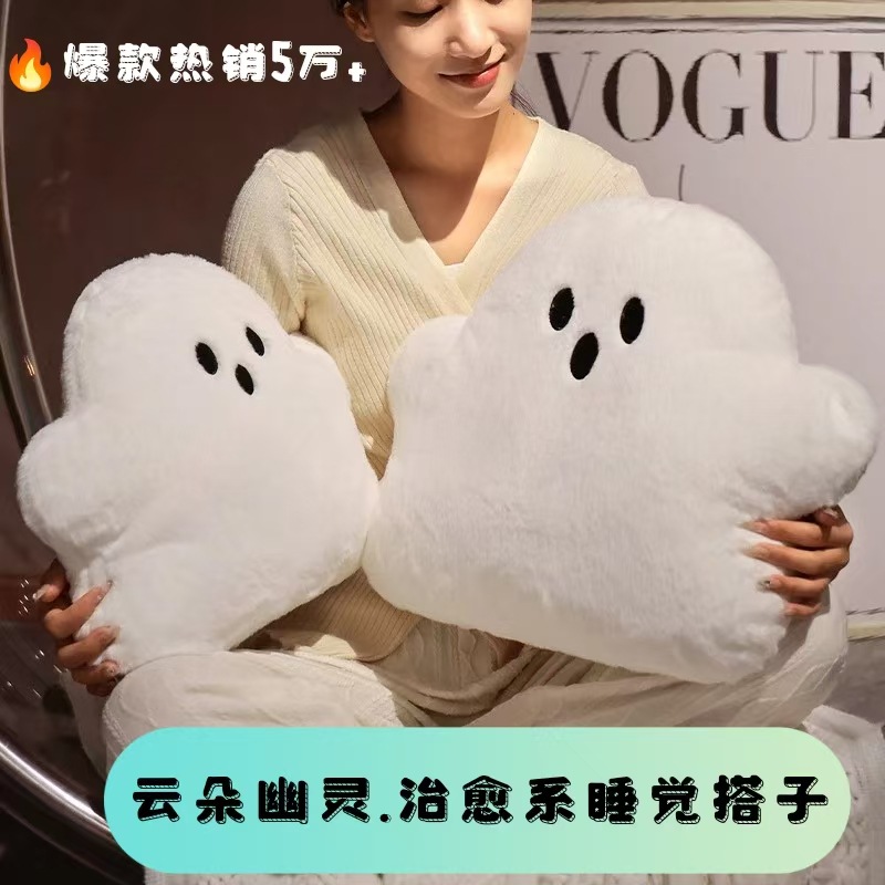 雲の幽霊のかわいい漫画風抱き枕、女の子向け肌に優しいふわふわぬいぐるみ、誕生日プレゼント、メーカー直送