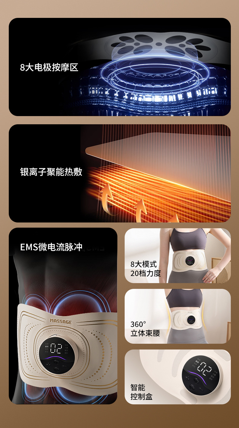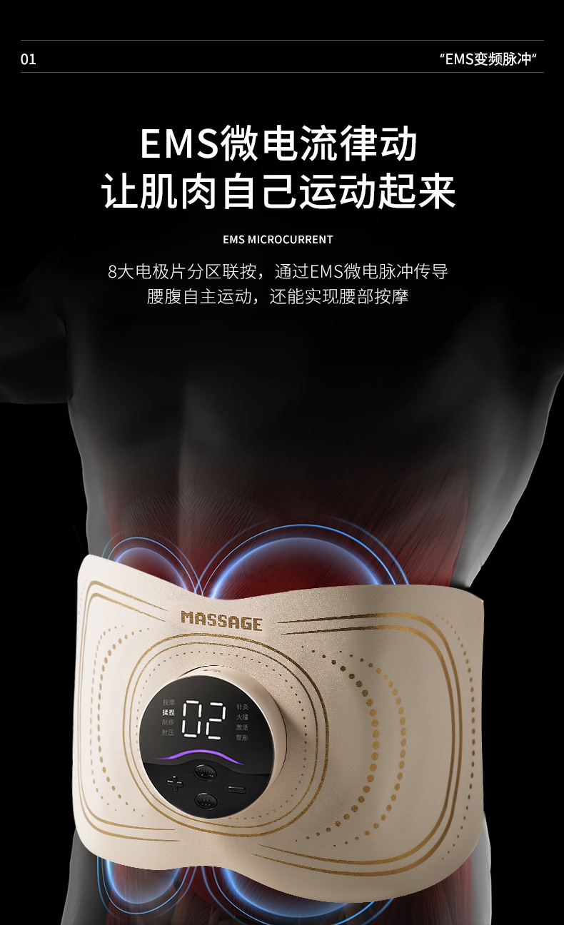 EMS腹部智能按摩仪带发热热敷护腰家用微电流暖腹腰部腰椎按摩器