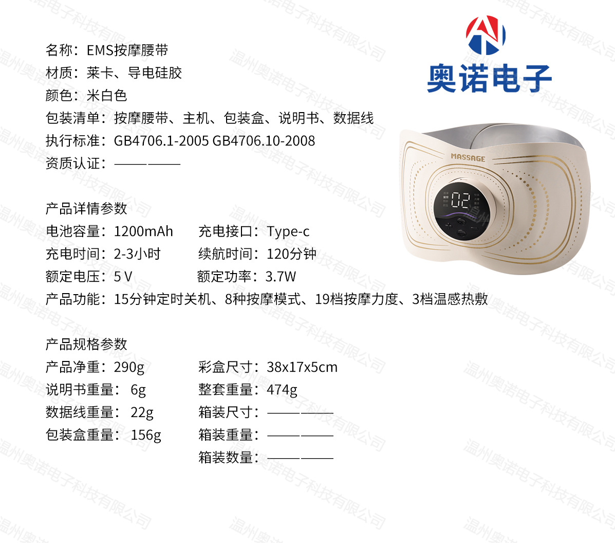 多功能便携EMS微电流腹部腰部微按摩腰带健腹热敷运动燃美全塑仪