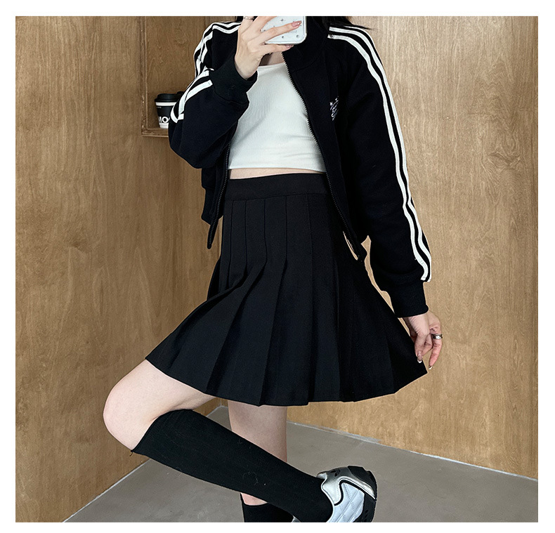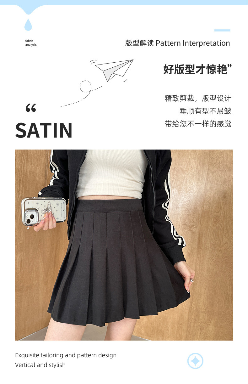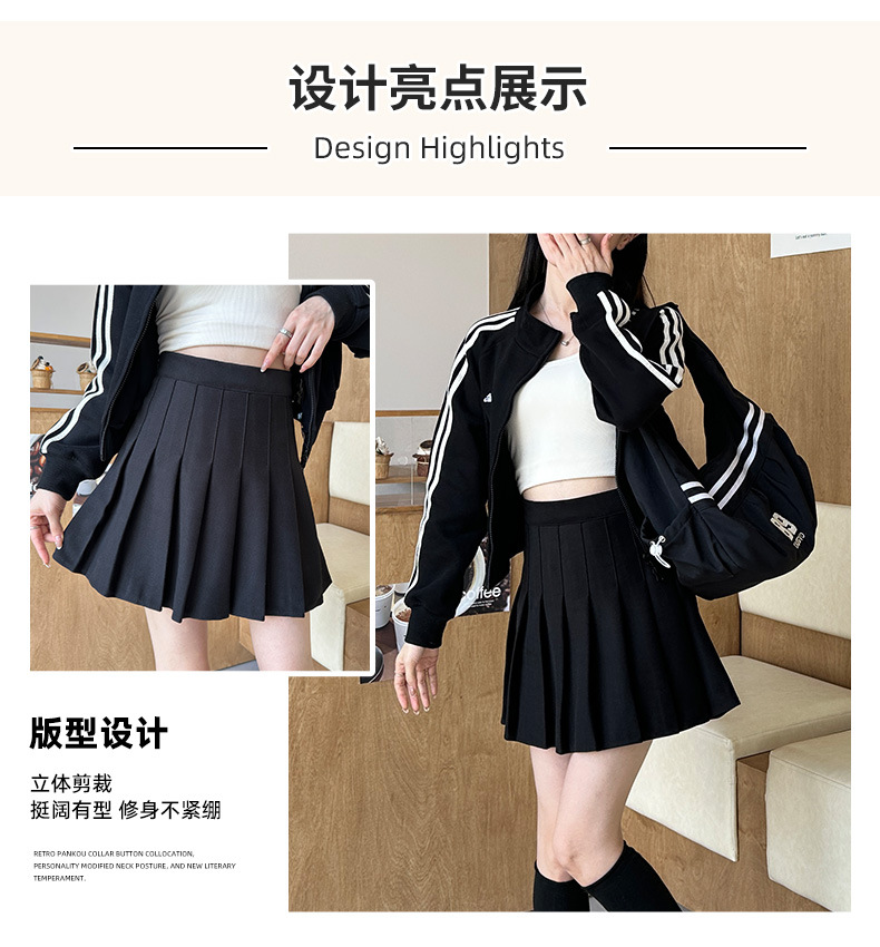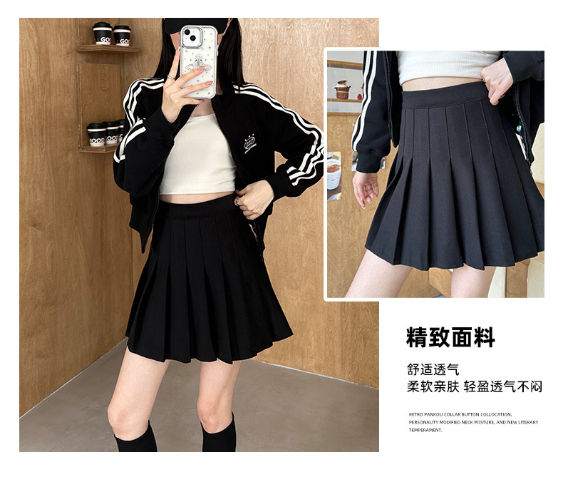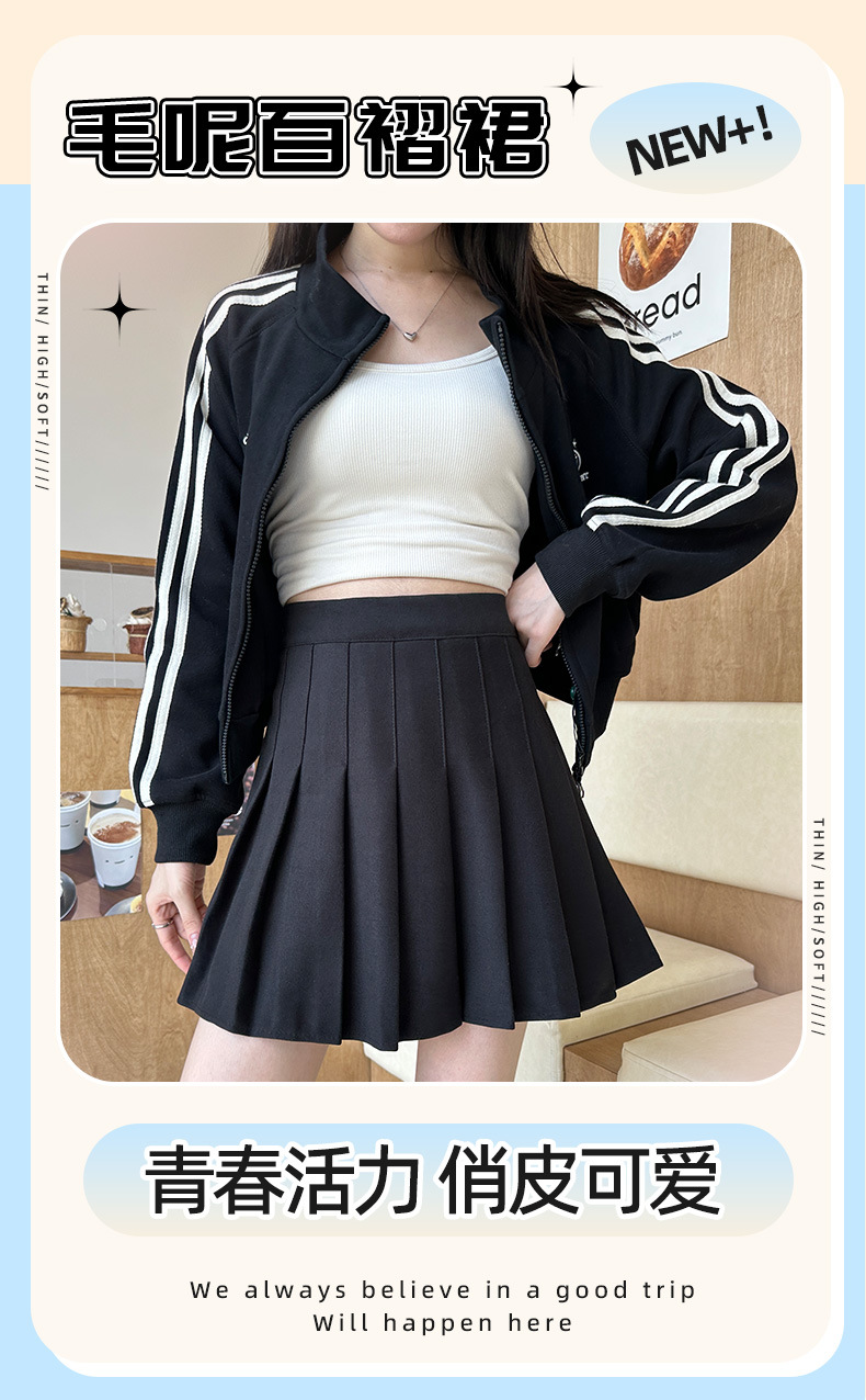 深色百褶裙女秋冬新款高腰显瘦A字细褶半身裙冬款加厚半身短裙子