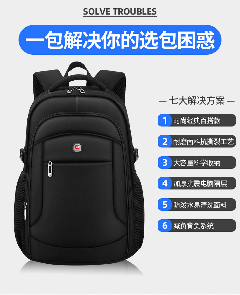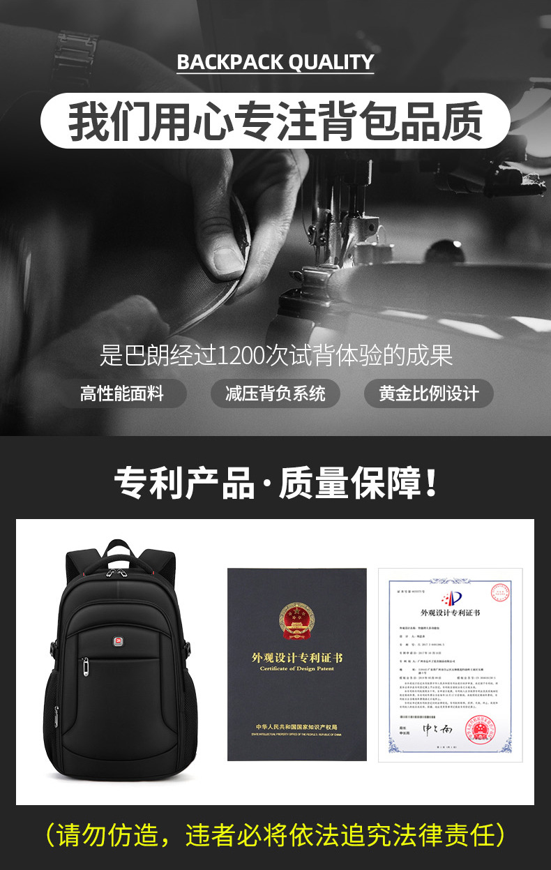 巴朗大容量大学生双肩包跨境商务休闲男女士旅行电脑背包书包