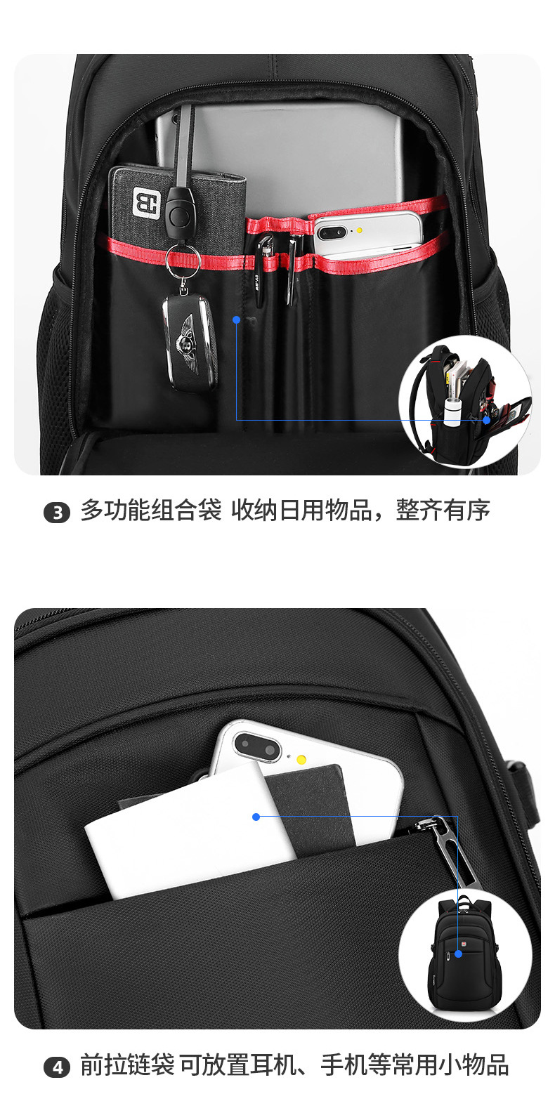 双肩包男士背包商务出差短途大容量旅行李包休闲男包多功能电脑包