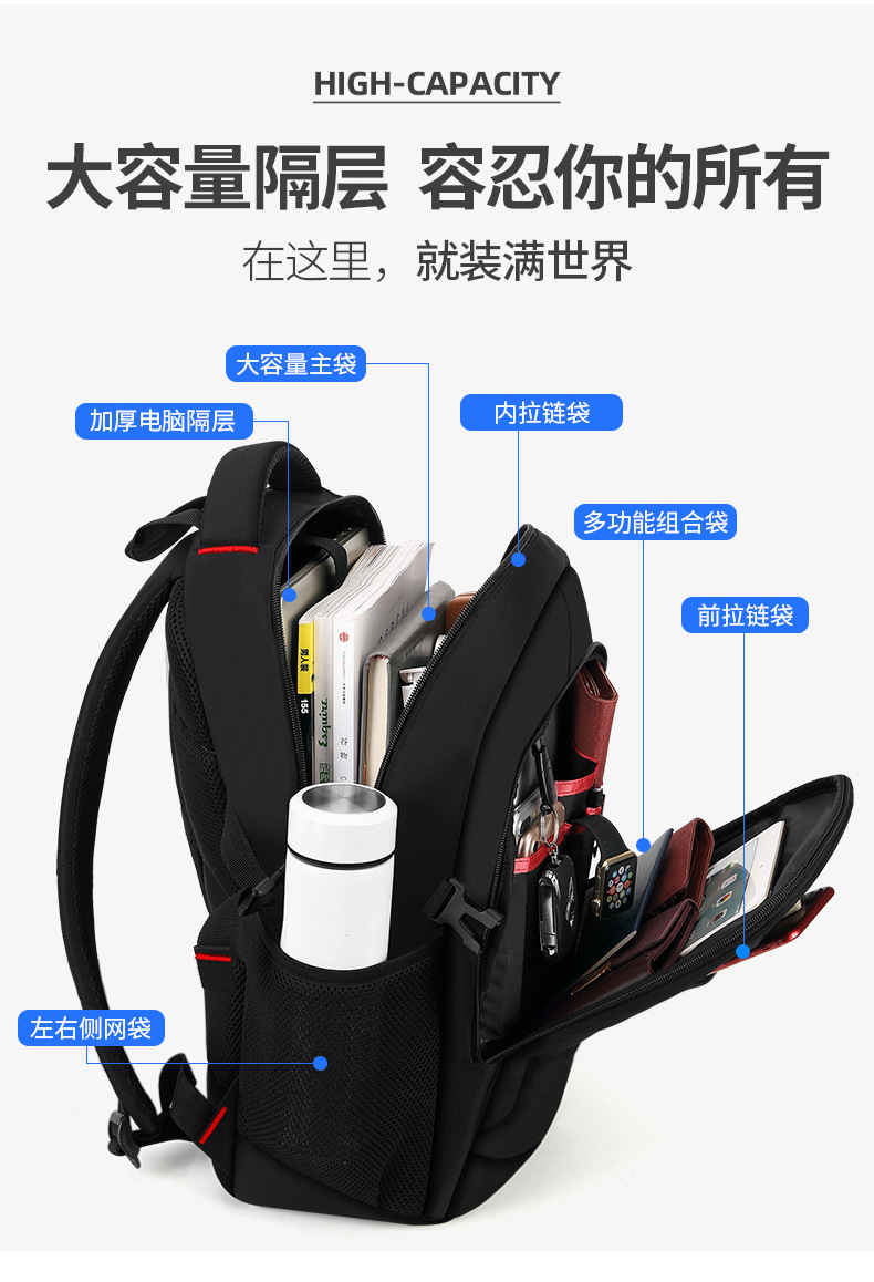 バラング大容量大学生用リュックサック、クロスボーダービジネスカジュアル、男女兼用旅行用パソコンリュック