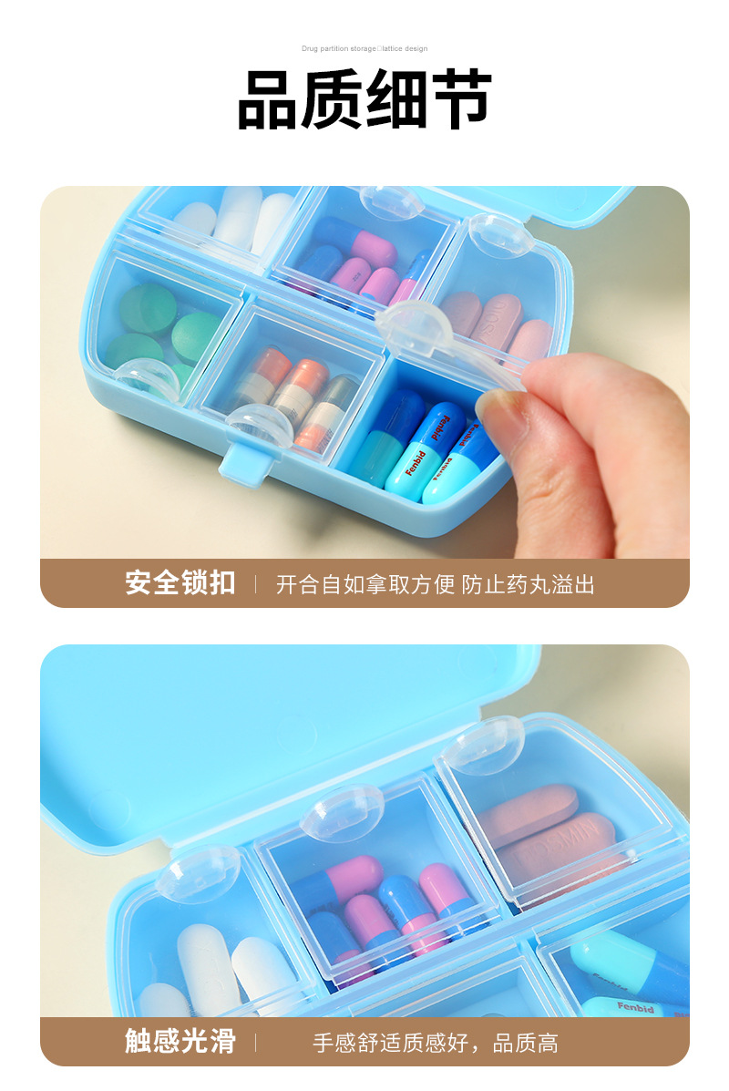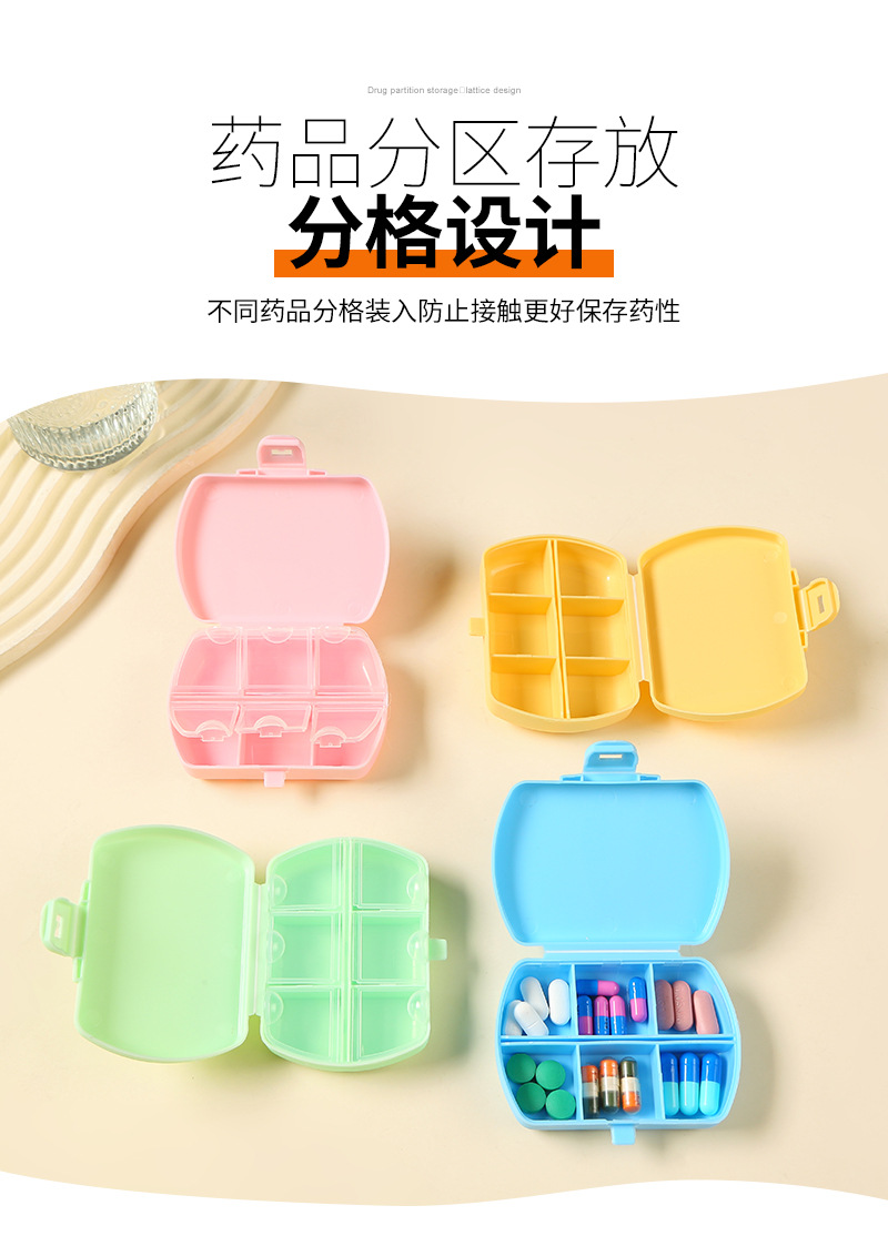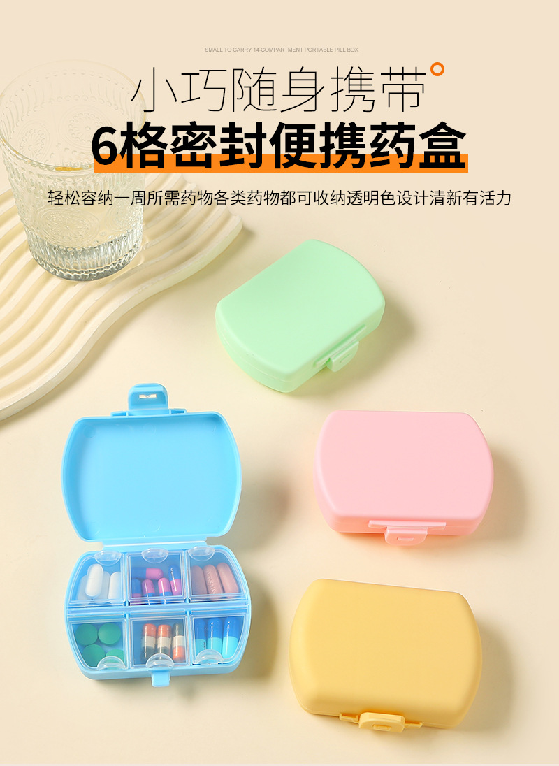 新品6格药盒便携防尘药品分装盒迷你药片收纳盒塑料小药盒印logo