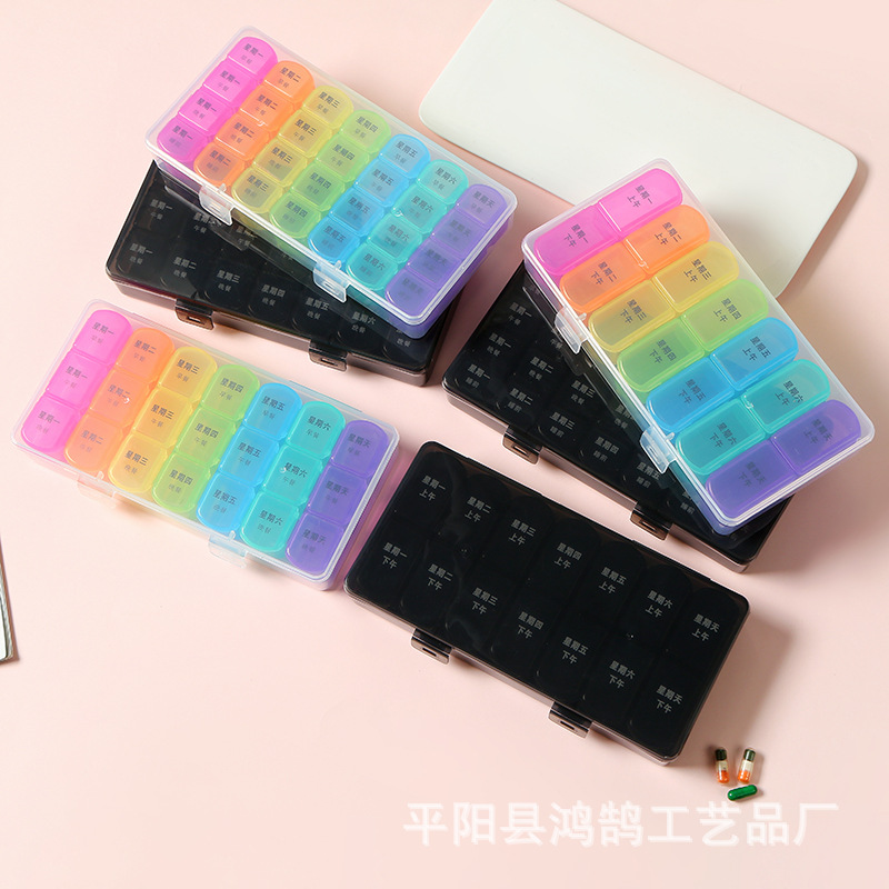 ポータブル包装 14 グリッド、21 グリッド、28 グリッド ピル ボックス、マルチカラー オプション、年中無休のポータブル包装および分割ピル ボックス