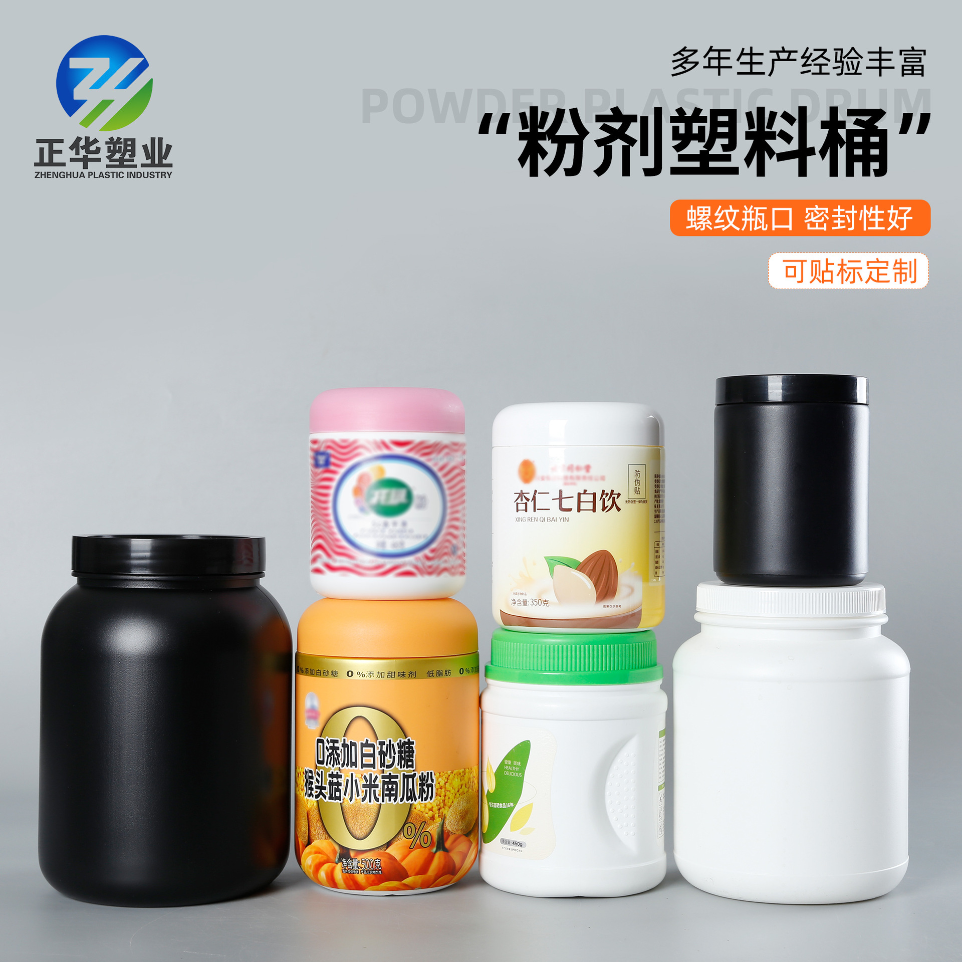 广口粉剂桶500ml蛋白粉塑料罐羊奶粉2L手持式塑料桶pe五谷杂粮桶