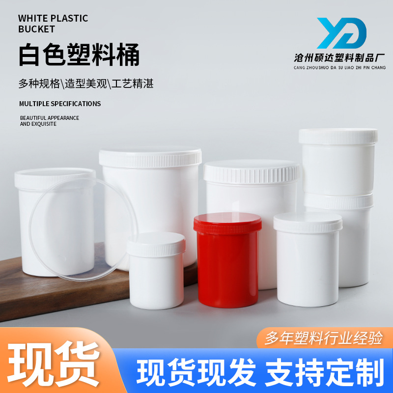 现货100ml红色广口圆瓶密封罐白色塑料桶pe涂料罐1L密封塑料罐