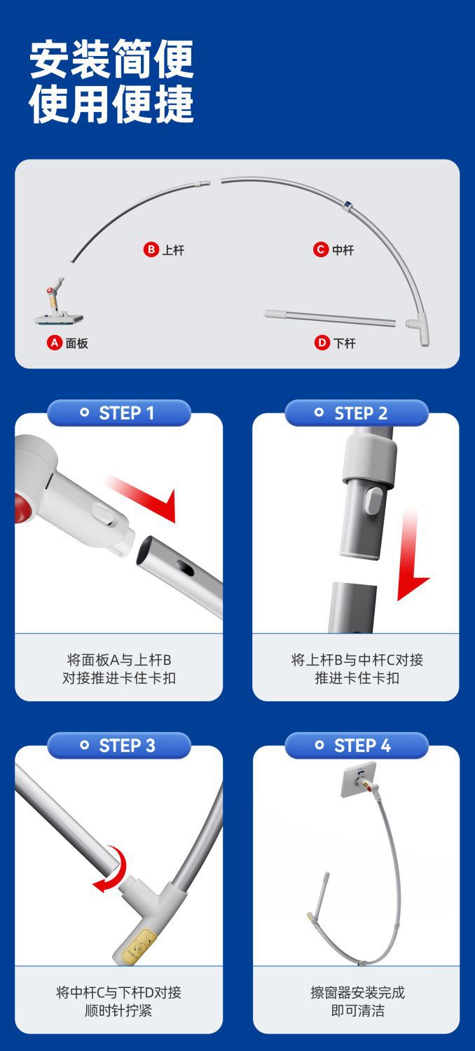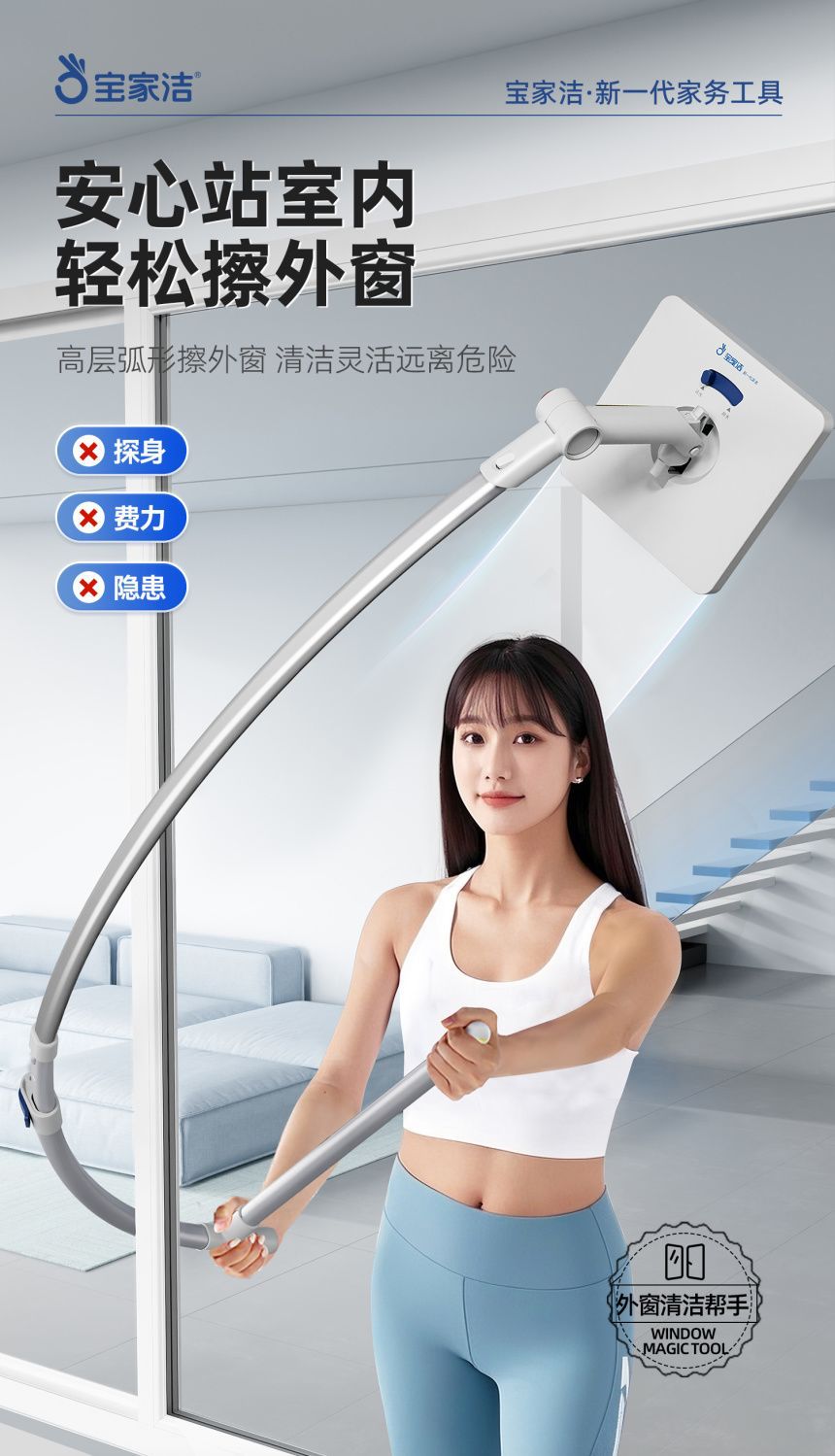 宝家洁擦玻璃神器窗外清洁手持外窗家用高层高楼弧形仿人臂擦窗器