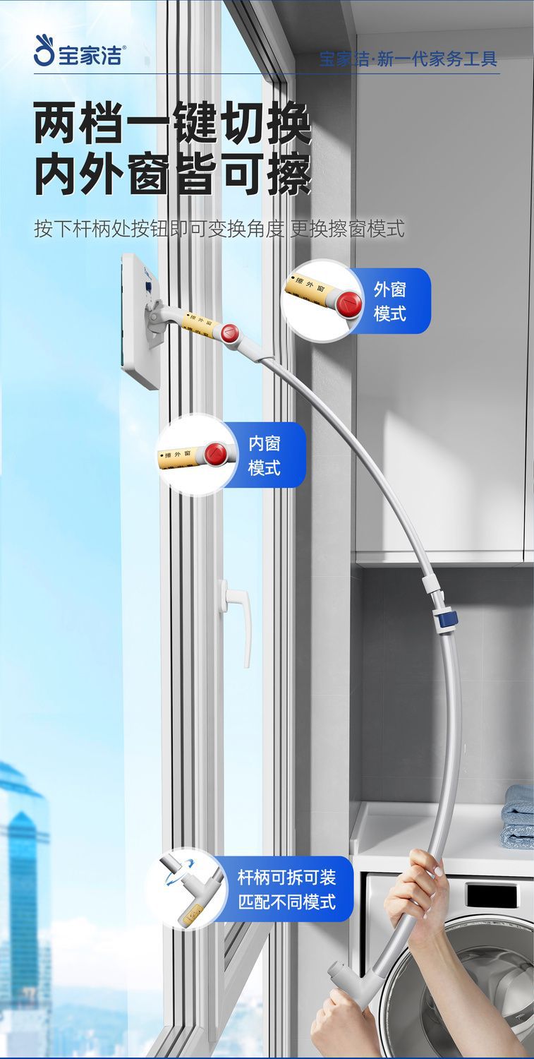 宝家洁家用高层外窗户高楼清洁双面擦保洁专用外窗工具擦玻璃神器