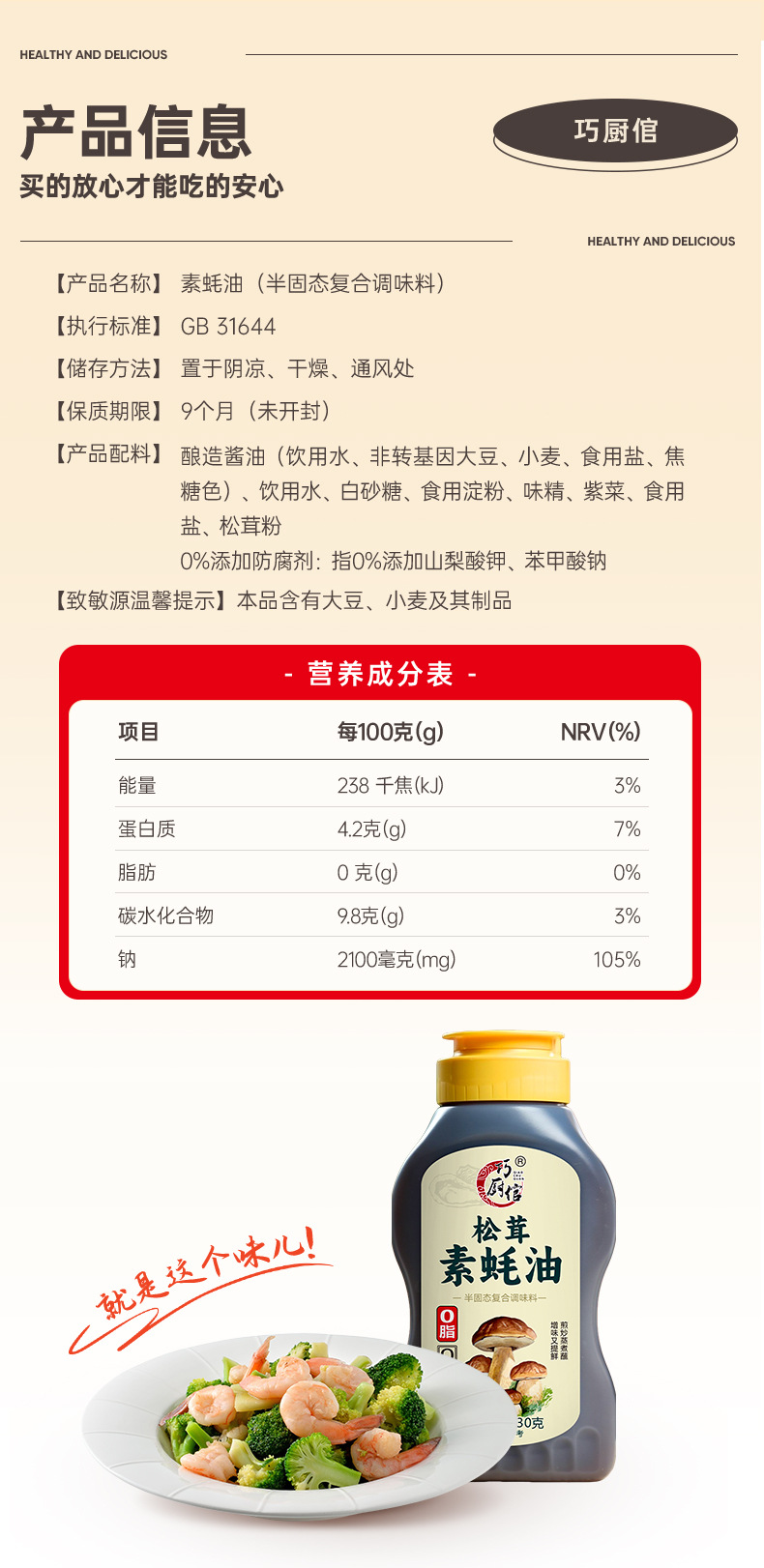 素蚝油不添加味精防腐剂无麸质桥本松茸素蚝油不加碘盐挤挤瓶提鲜