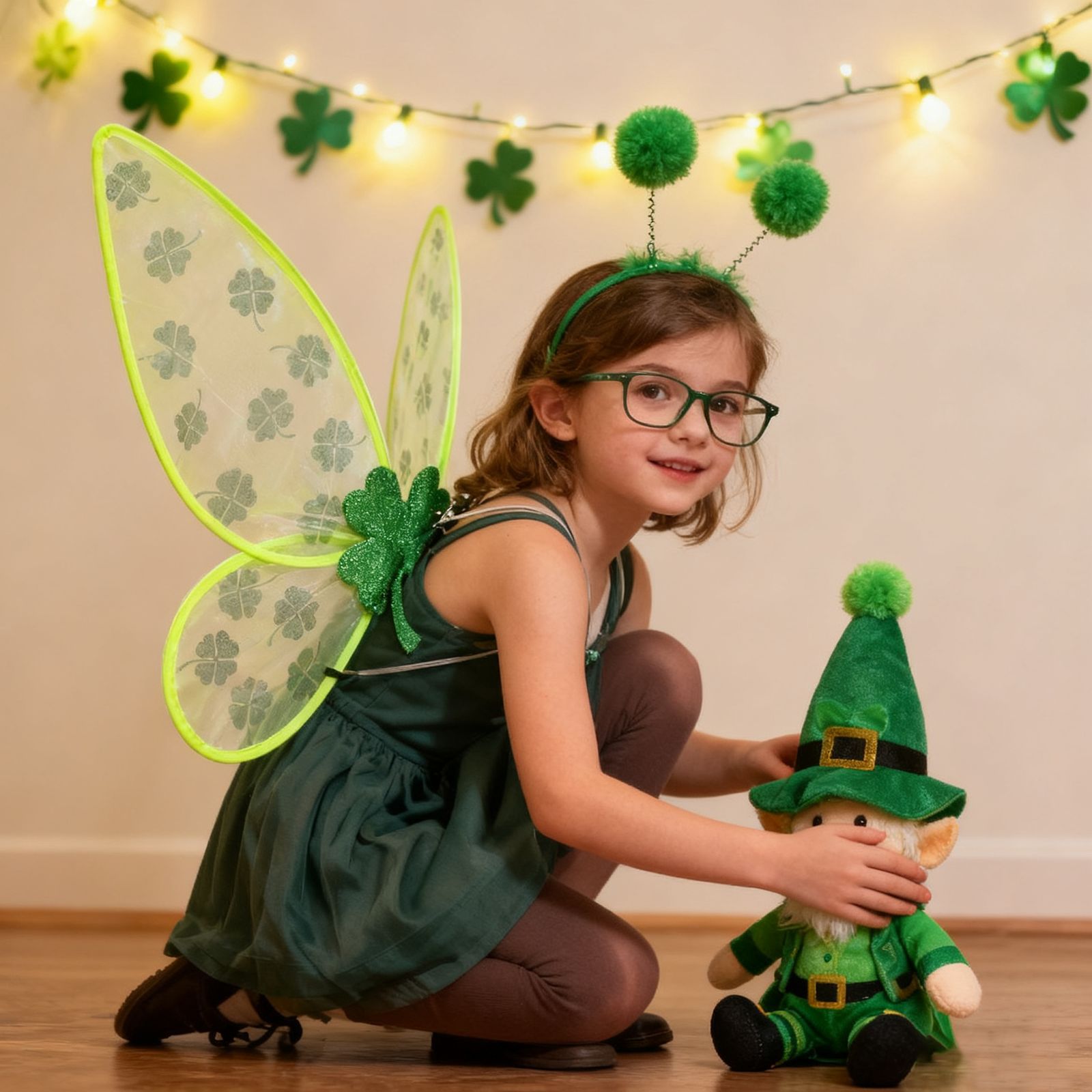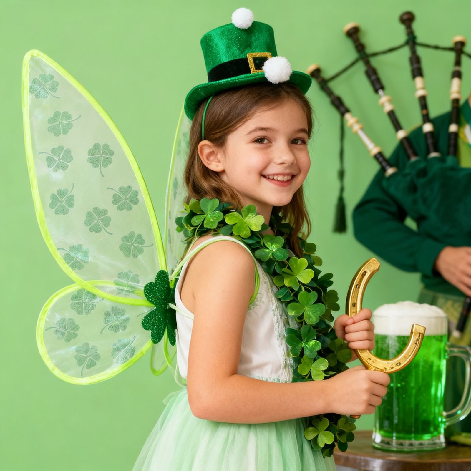 跨境新款三叶草蝴蝶翅膀圣帕特里克绿色翅膀派对舞台表演装扮道具